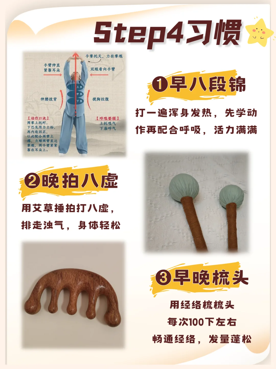 🔸早晚梳头100下:看龚燕冰学的梳头法,畅通经络,发量蓬松