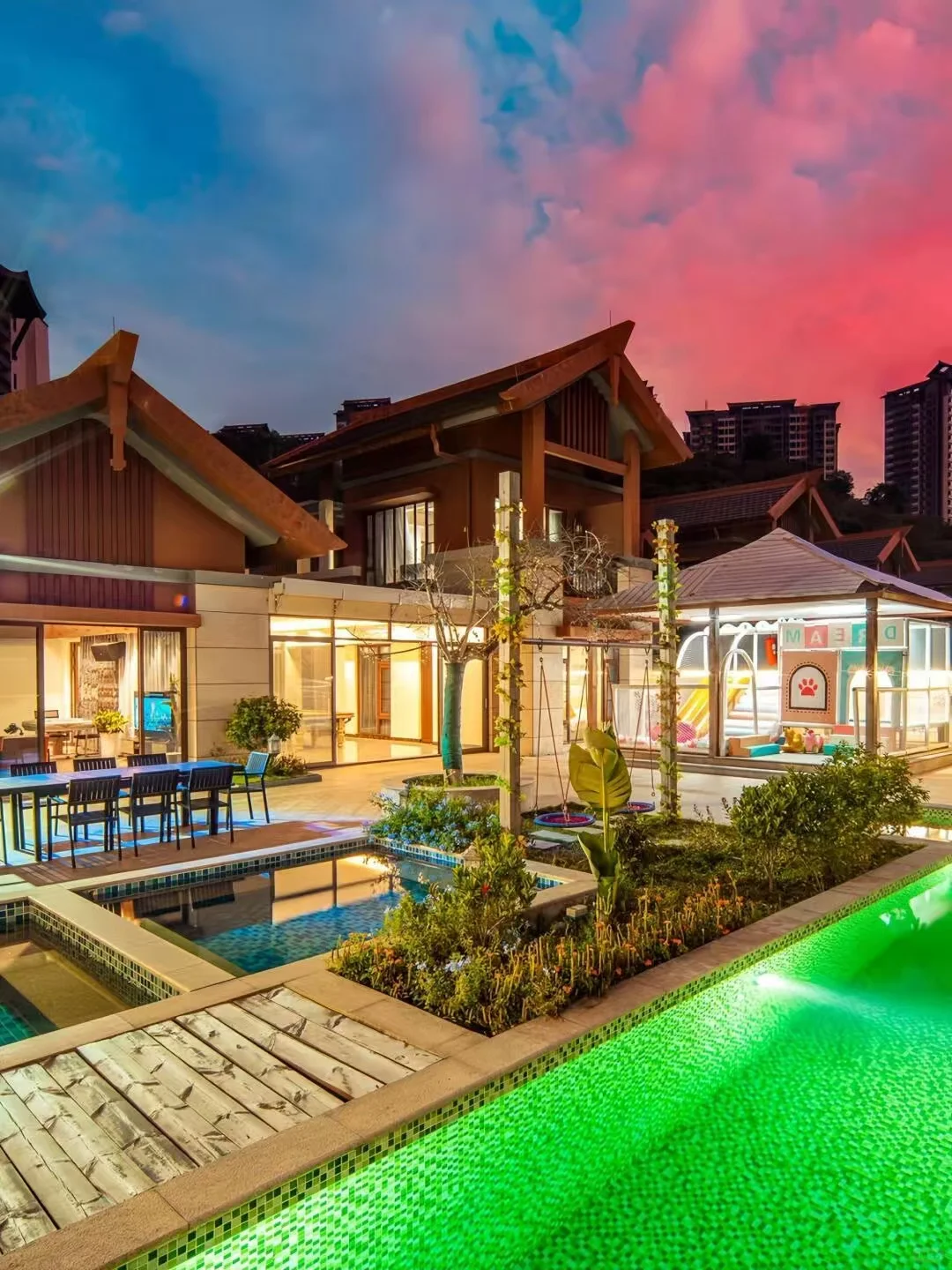 KTV、🀄️麻将台、台球🎱、自助厨房、游泳池、🛝滑梯儿童乐园啵啵池,♨️私家温泉……我爸爸妈妈跟孩子们宁愿呆在别墅都不愿出去玩了😂
