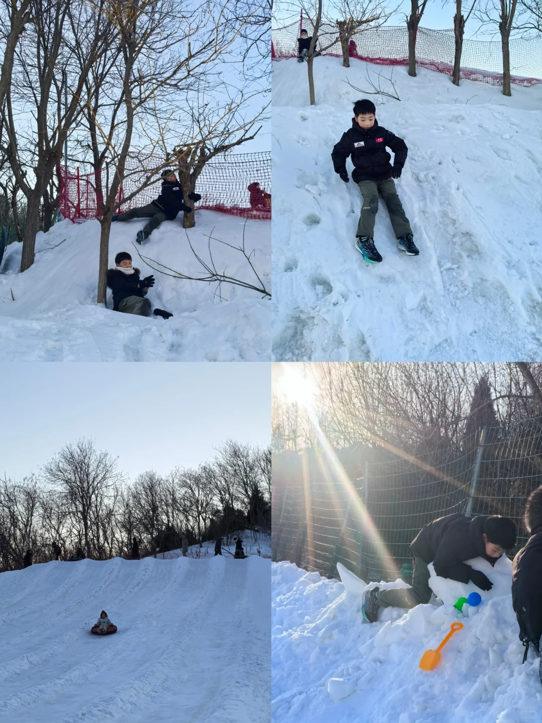 ❶ 冬天滑雪场:公园里设置的滑雪区,虽不大但很适合滑雪入门,100+的亲子票可以双板or轮胎二选一!⛷️ 也可以现场10元买一个雪球夹,孩子可以尽情撒欢,感受北方专属乐趣☃️