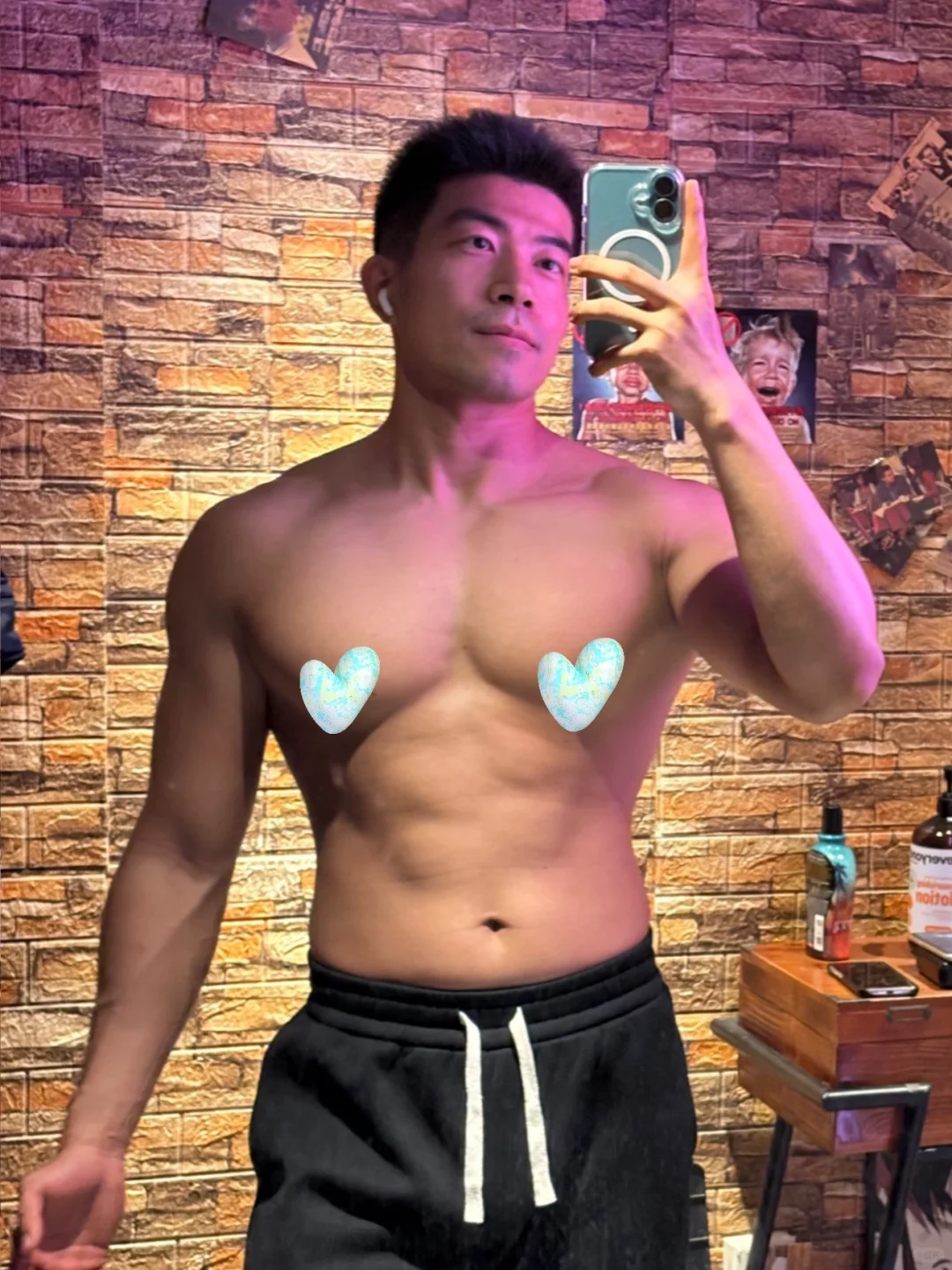 过个年体脂飞升,肌肉变小同时变胖。健身造型展示无不良引导。