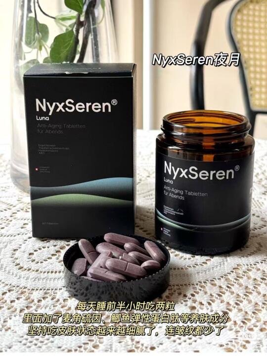 🥰关于内调保养这个我比较有发言权!这么多年一直是坚持内调的,20多岁我就有抗初老保养意识了,经常会研究一些美容养生食谱,炖花胶泡花茶等,也吃一些益生菌,胶原蛋白,鱼油之类的保养品,这里面坚持蕞久的是瑞士的NyxSeren夜月,50mg麦角硫因潜入细胞各个角落,清除堆砌的自由基,打通输送营养的管道,帮助修复受损的线粒体,还复配了鲣鱼弹性蛋白肽(改善皮肤弹性),真的非常适合我,每天睡前半小时吃上2粒,现在感觉自己皮肤状态越来越细腻了连细纹都少了,是那种由内而外散发出来的好气色,这是普通的护肤品没法比的,皮肤的衰老速度和同龄人对比就像按了慢速键!~~