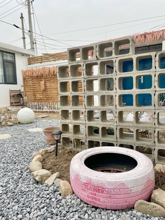 ✅上次有人站门口偷窥我院子,最近突发奇想,用空心砖用了一个隔断,挡一下视线,叫你偷看!!打算刷上白漆