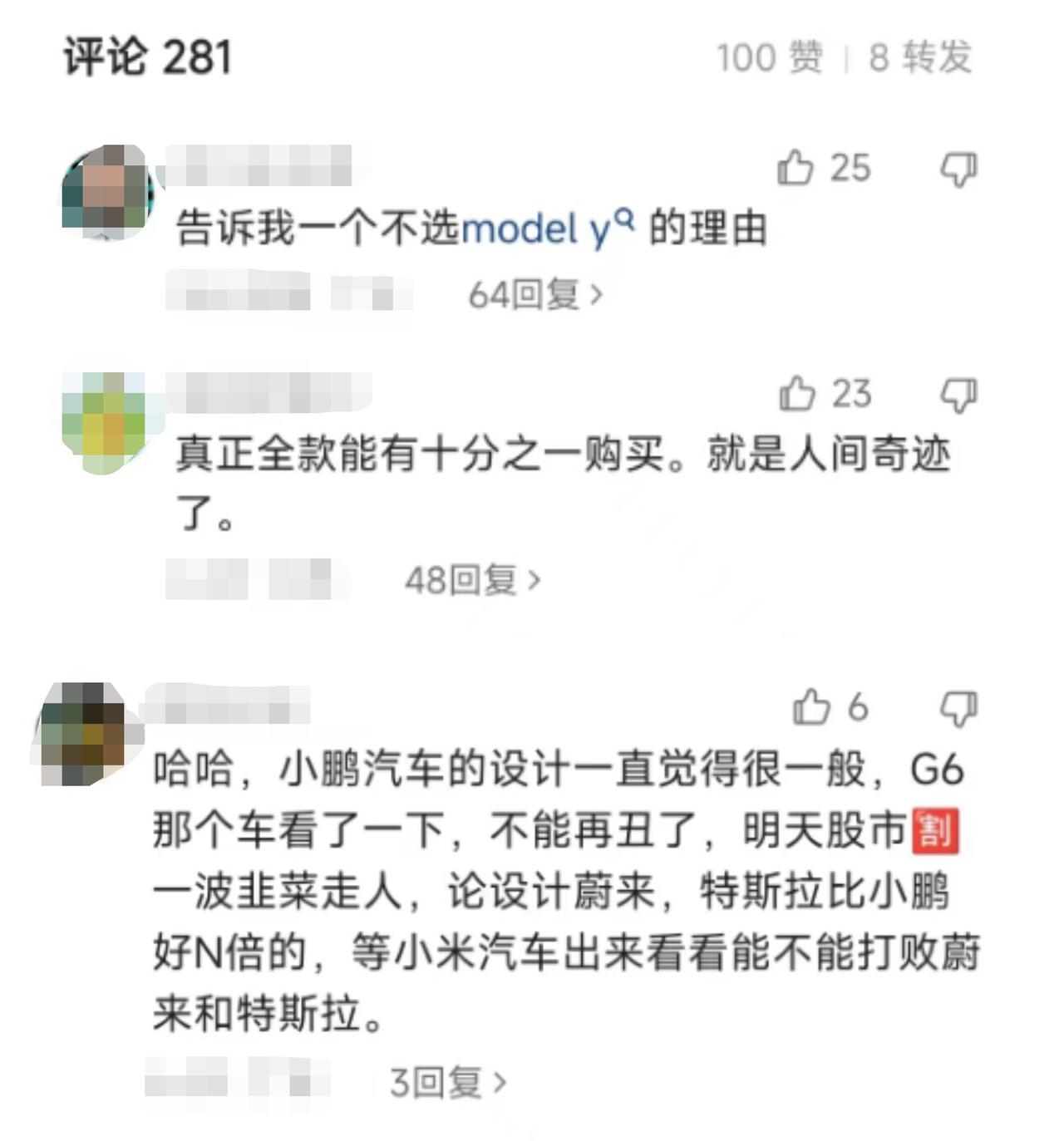 小鹏G6赔本赚吆喝,砸特斯拉场子,纯粹是饮鸠止渴的做法,治标不治本。明年发布的小米电动汽车才是狙击特斯拉的X因素。 大家在为新发布的小鹏G6降价两万喝彩的时候,别忘了小鹏正处于至暗时刻。在刚刚发布第一季度财报中,小鹏总收入为40.3亿元,较去年同期下降46%,其中汽车销售收入35亿元,较2022年同期“腰斩”,汽车收入的毛利率是惊人的-2.5%,换句话说,小鹏去年每卖出一辆就亏一辆。 如今小鹏G6配置升级,定价却一降再降,让人不禁想问:这车还能回本吗?可以肯定的是,即便小鹏在销量上胜过特斯拉,也是一桩吆喝买卖,赚的是人气。 问题是小鹏G6价低至20万,在网友的反馈中,口碑仍旧不敌特斯拉Model Y,这其中对小鹏汽车的印象流、特斯拉的品牌价值等因素起着至关重要的作用。 显然正面硬接特斯拉价格战的打法已经不适用了,保持核心产品力,树立中高端品牌形象才是正解。这次,打破特斯拉垄断的希望火种貌似要传递到小米汽车上了。 虽然有传言说小米汽车售价14.99万元,但我想说只看价格不看配置,那不是耍流氓吗?如果真是如传言般的800公里以上的续航,参考蔚来ET7,少说也得30万起步。小米公关部经理王化也是下场辟谣了,小米这瓜不保真。 看看小米造车的决心有多大就知道了,耗时两年建好了汽车基地,组建千人研发团队开发700项专利技术。而且前有“蔚小理”三家价格下沉,仍旧不敌特斯拉Model Y,后发的小米大可不必在20万以下的价格段内卷,大胆猜测,25-35万才是明年小米汽车的主战场! 一旦小米汽车在中高端破除特斯拉的垄断,届时蔚小理等造车新势力也将迎来翻身的机会!
