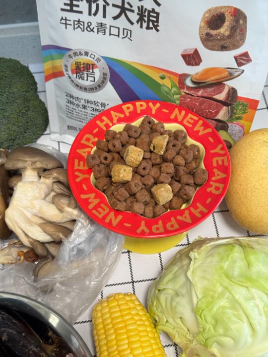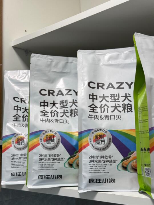 我家小咩小时候有段时间胖的像个球,还有点外八。 朋友来我家玩的时候,说小咩看着关节好像有点问题,应该是太重了的原因,还问我给它吃的啥东西了养这么胖。不是我朋友告诉我,我都不知道原来狗狗饮食还有这么大学问呢!原来不同体型的狗狗对营养的需求都不一样,一般的狗粮热量比较高,对于小狗来说比较合适,但是大狗吃的话就有点太多了,很容易长胖导致关节出问题,尤其是像我家小咩这种大体格一点的狗,平时上下楼梯、跑跑跳跳对关节负担都是很大的。 有了这个教训之后,小咩的饮食方面我是一点也不敢马虎了 日常就会买一些护关节的东西,所以选狗粮也会看相关成分。 🥸因为最开始也不是特别懂,就先跟着朋友换了疯狂小狗家的中大型犬狗粮,想着跟着吃应该不怎么出错,吃下来确实还可以。营养配比啥的都是根据大狗设计的,里面还添加了青口贝和牛软骨补充天然软骨素和氨糖,对骨骼发育啥的很有好处,42天就能明显感觉到狗狗关节养好了,有关节问题、腿脚不利索的狗狗一定要重点补充软骨素。狗粮是比较大的彩虹颗粒,上面的颜色是蔬菜什么的,小咩子干饭速度都变慢了很多,还是空心的,感觉消化的更好了,也不像之前一样软便了,粑粑也没有很臭! 我现在除了喂狗粮,有空还会多补充一些对关节有好处的食物,像西兰花🥦、秋葵啥的。虽然现在还正值壮年,但是还是希望年轻的时候养养骨骼,这样子老了它舒服我也安心~😊