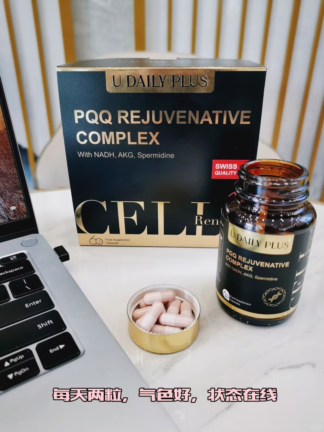 50岁姐姐的元气日常|不费力的年轻感藏在生活细节里 这段时间总被问"怎么做到50岁还有马甲线",其实哪有什么天生冻龄,不过是把健康的生活方式揉进生活缝隙里。分享几个元气日常的小确幸: [一R]早睡早起仪式:晚上10:30睡觉,早晨6:30起床,空腹喝温水后铺开瑜伽垫做拉伸,身体会舒展许多。 [二R]坚持有氧运动。每天上下班穿越两个公园,步行近八公里,即健身又感受了公园效应 ,身心愉悦、一举两得。每周两次打羽毛球,教练说我的肌肉线条比三年前还紧致。 [三R]培养兴趣爱好。重拾闲置的瓶罐书画,让它再次成为我舒缓压力的风雅情趣。 [四R]逆龄三件套:比医 美更管用 [种草R]护肤极简:洗面奶+水乳+防晒,省下的钱买新鲜食材 [种草R]情绪排 毒:绝不内耗,及时翻篇,毕竟人活的是将来而不是过去。 [种草R]营养品补充:每周三次银耳桃胶羹,鱼虾摄入量是红肉两倍,额外补充优缇利细胞PQ Q。 一粒含有PQ Q 、NADH、AKG、亚精胺4种细胞抗衰原料 PQ Q含量20mg 对细胞修复、线粒体功效激 活、延缓整体抗衰都非常有效。 现在和黑芝麻丸一起躺在我的养生抽屉里。倒没有立 竿见影的神奇 效果,但配合规律作息,确实感觉白天精神头更稳了,像手机开启了省电模式却还能高 效运转。 🍃保持年轻态的秘诀可能在于: 不过度依赖某件"神奇单品" 而是把养护融入每个日常切片 让身体细胞在温润的节奏里自然更新 50岁也可以是闪闪发光的年纪✨