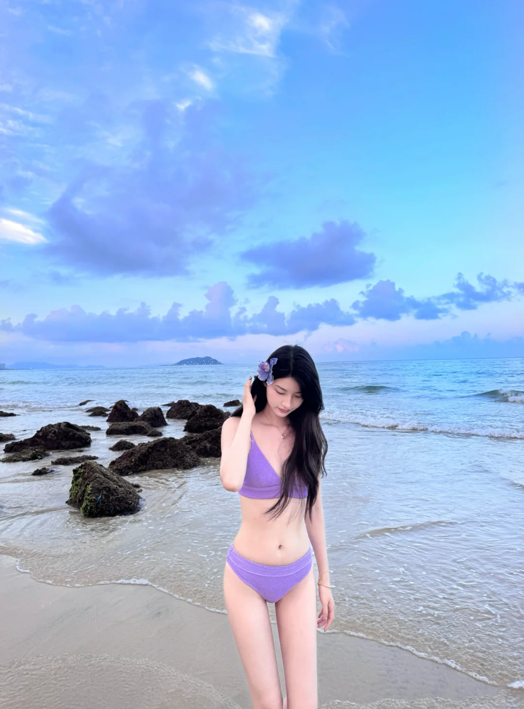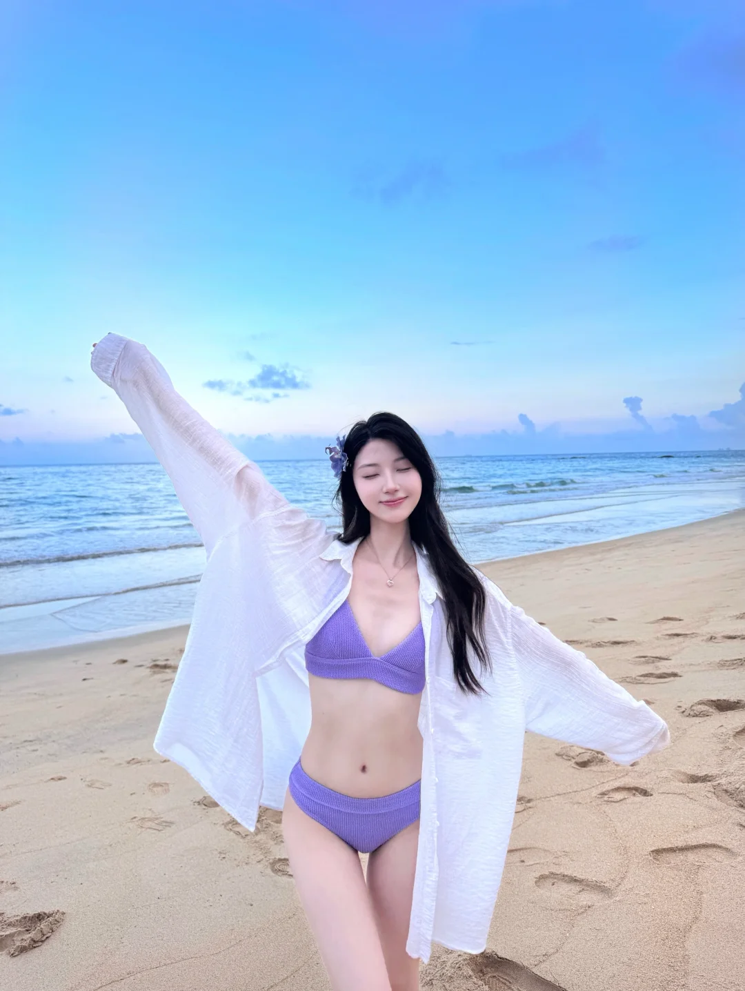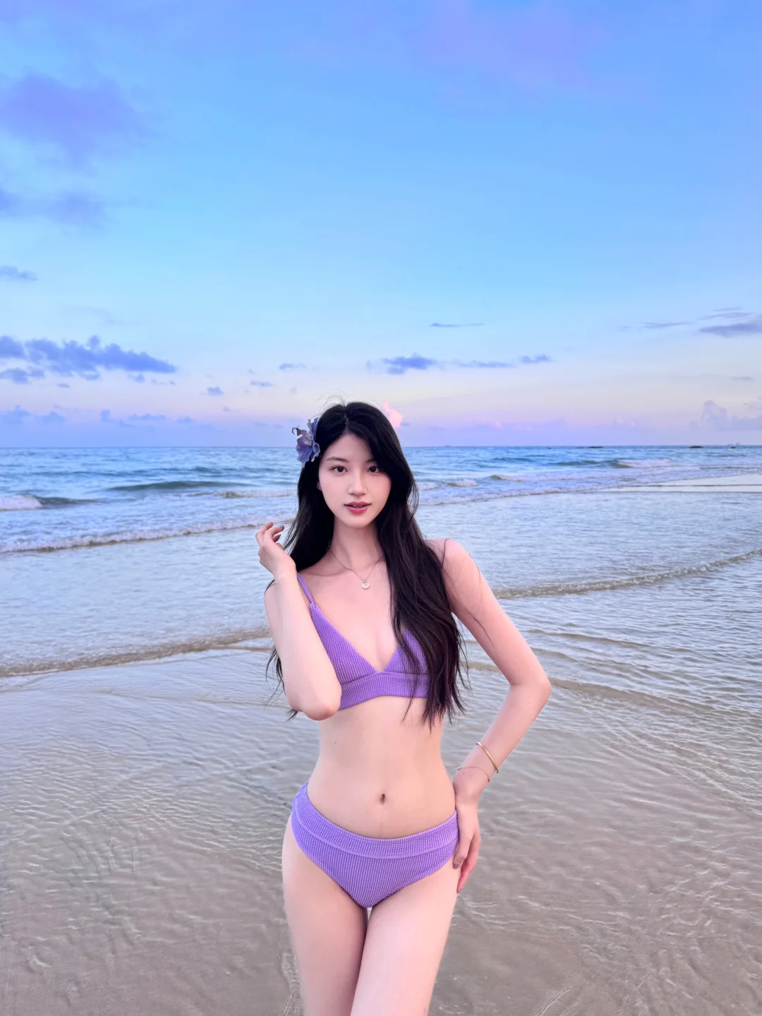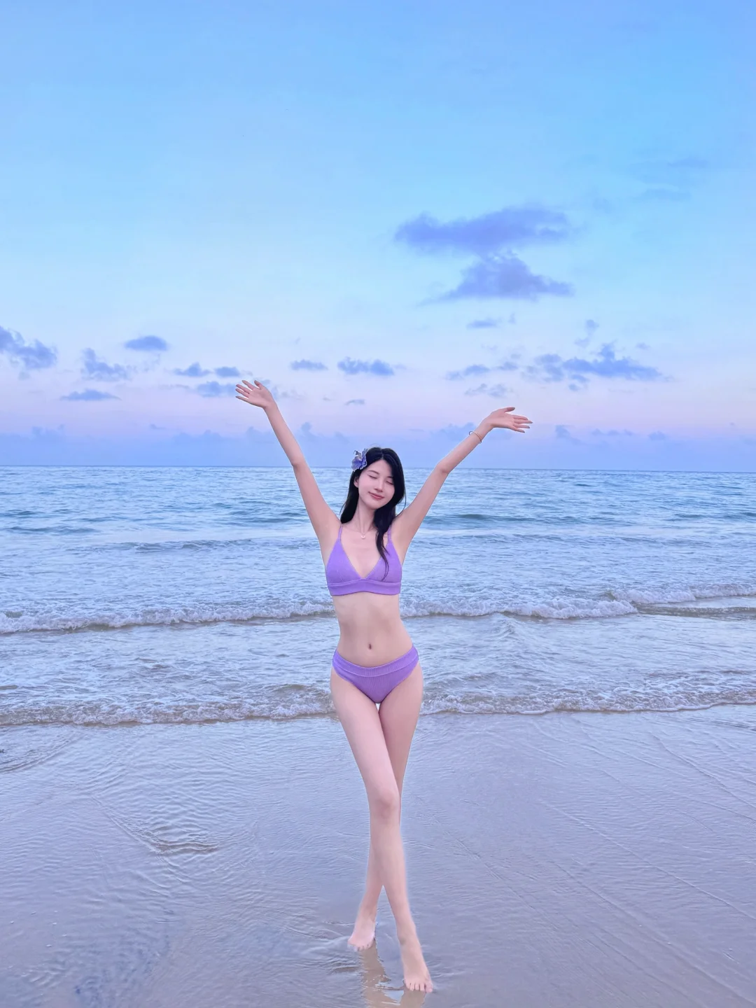 好喜欢落日时分的海边 粉蓝色调真的很好看 依旧是我的幸运紫色~ 💜yukariswim旗舰店