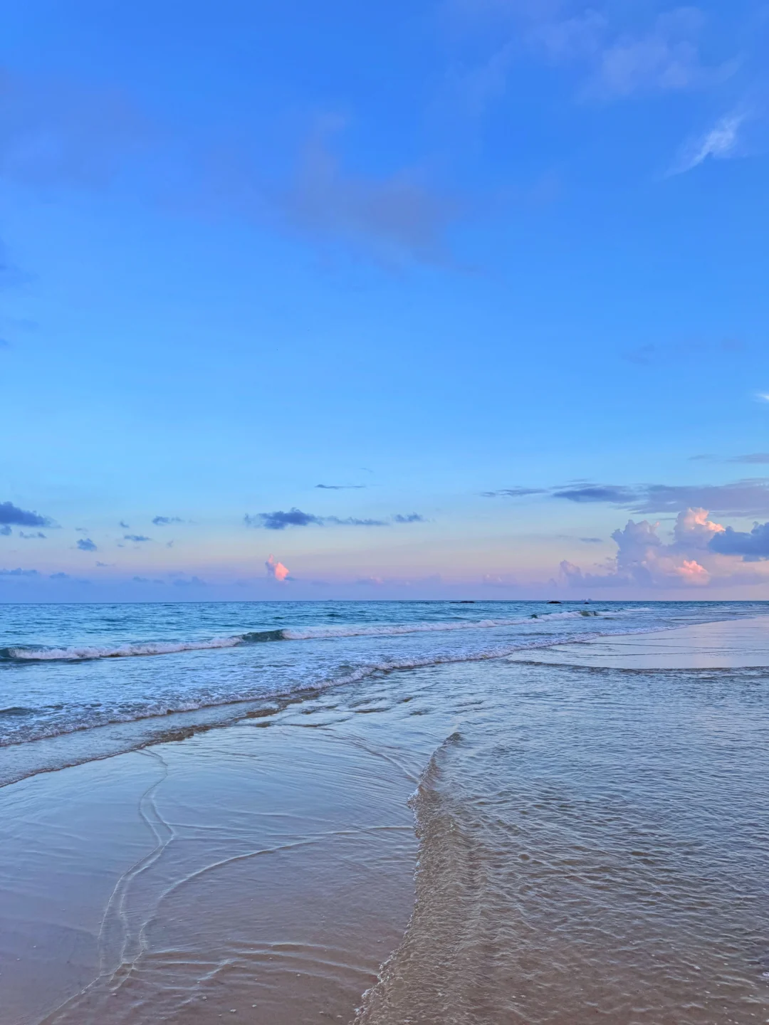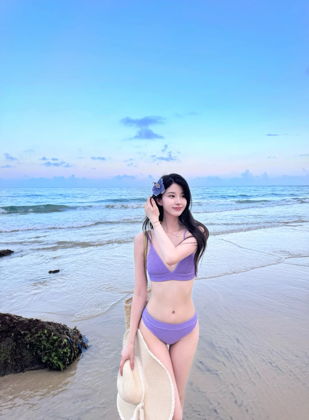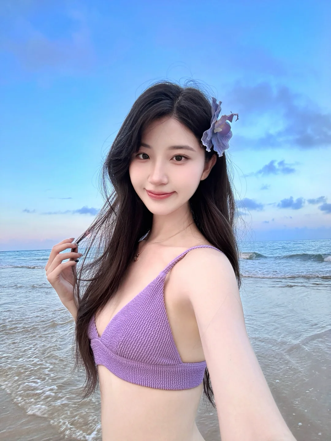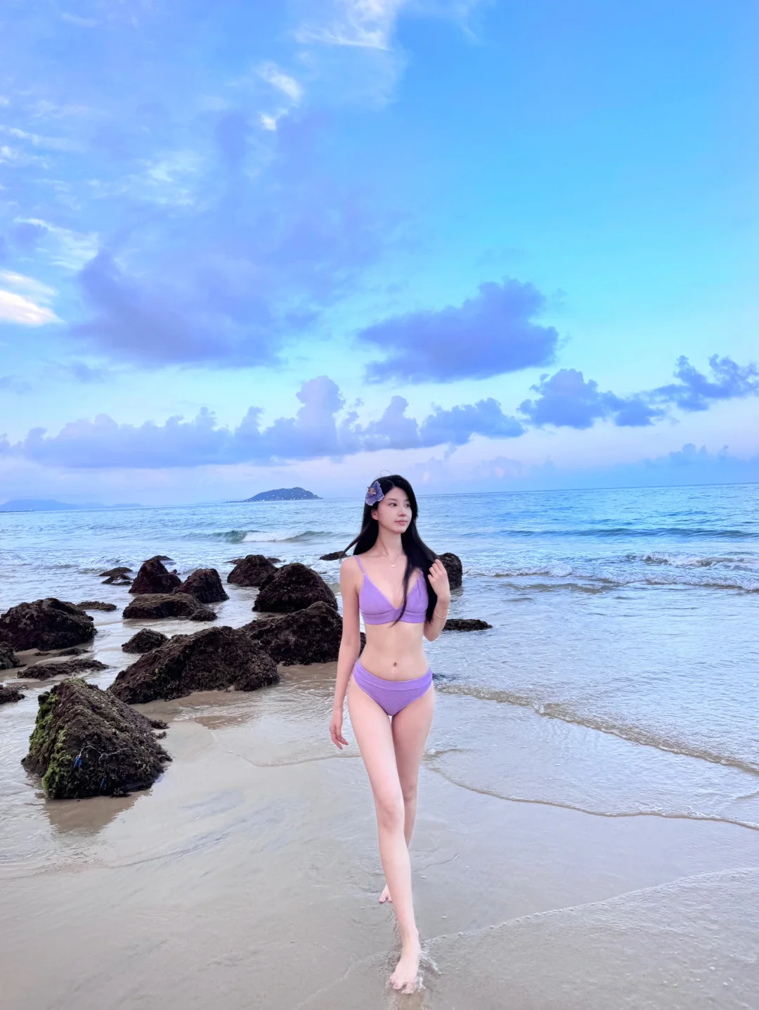好喜欢落日时分的海边 粉蓝色调真的很好看 依旧是我的幸运紫色~ 💜yukariswim旗舰店