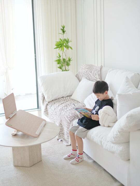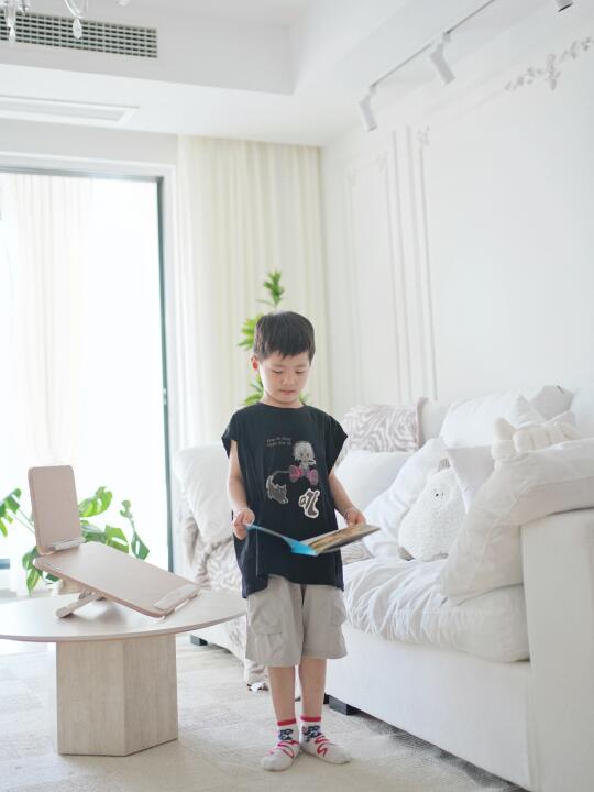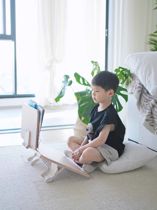 • 晨读时光:把学绘台调整到成45°,小朋友自己就能轻松指读 • 网课时间:平板放在软胶卡槽里,再也不怕孩子碰倒 • 亲子手工:做贺卡时当画架,边缘圆润不划伤小手臂 💝 这些细节太戳心 • 配套防滑书夹像小云朵一样Q弹 • 原木色颜值也很喜欢 跟我的儿童房很搭配呢 •去哪个房间都可以方便带过去! 穿搭小小郑