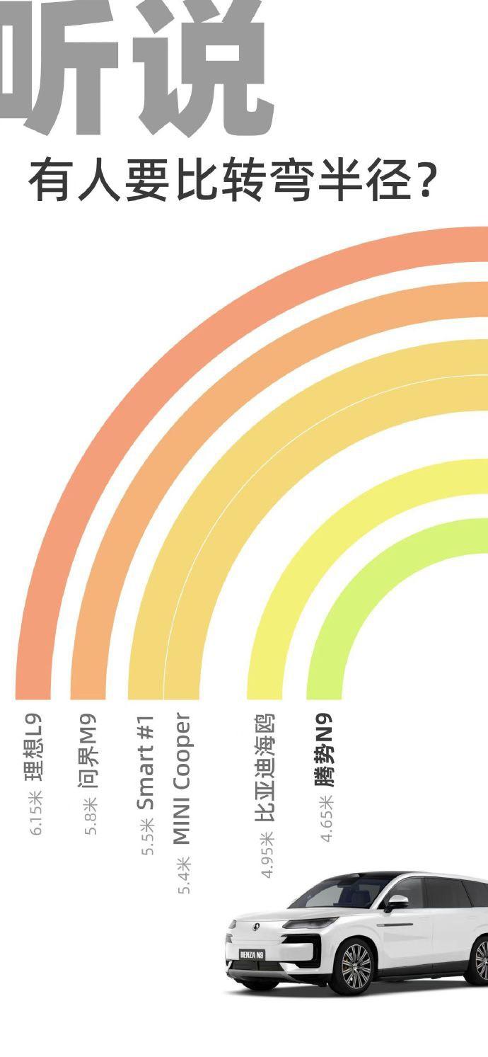 腾势N9的转弯操作,豪车见了都得俯首称臣!N9的转弯半径只有4.65米,这数据一出来,好多车都瞬间不香了。要知道,很多小巧的车型转弯半径都比它大。腾势N9作为一款大尺寸的车,能做到这样的转弯半径,靠的是先进的易三方和精心调校的底盘。有了这超小转弯半径,日常驾驶便利性大幅提升,不管是在拥挤的市区道路穿梭,还是在停车场停车入库,腾势N9都能游刃有余。不得不说,腾势这次在转弯半径上的突破,给消费者带来了实实在在的好处,让开车变得更省心省力。腾势汽车 腾势N9