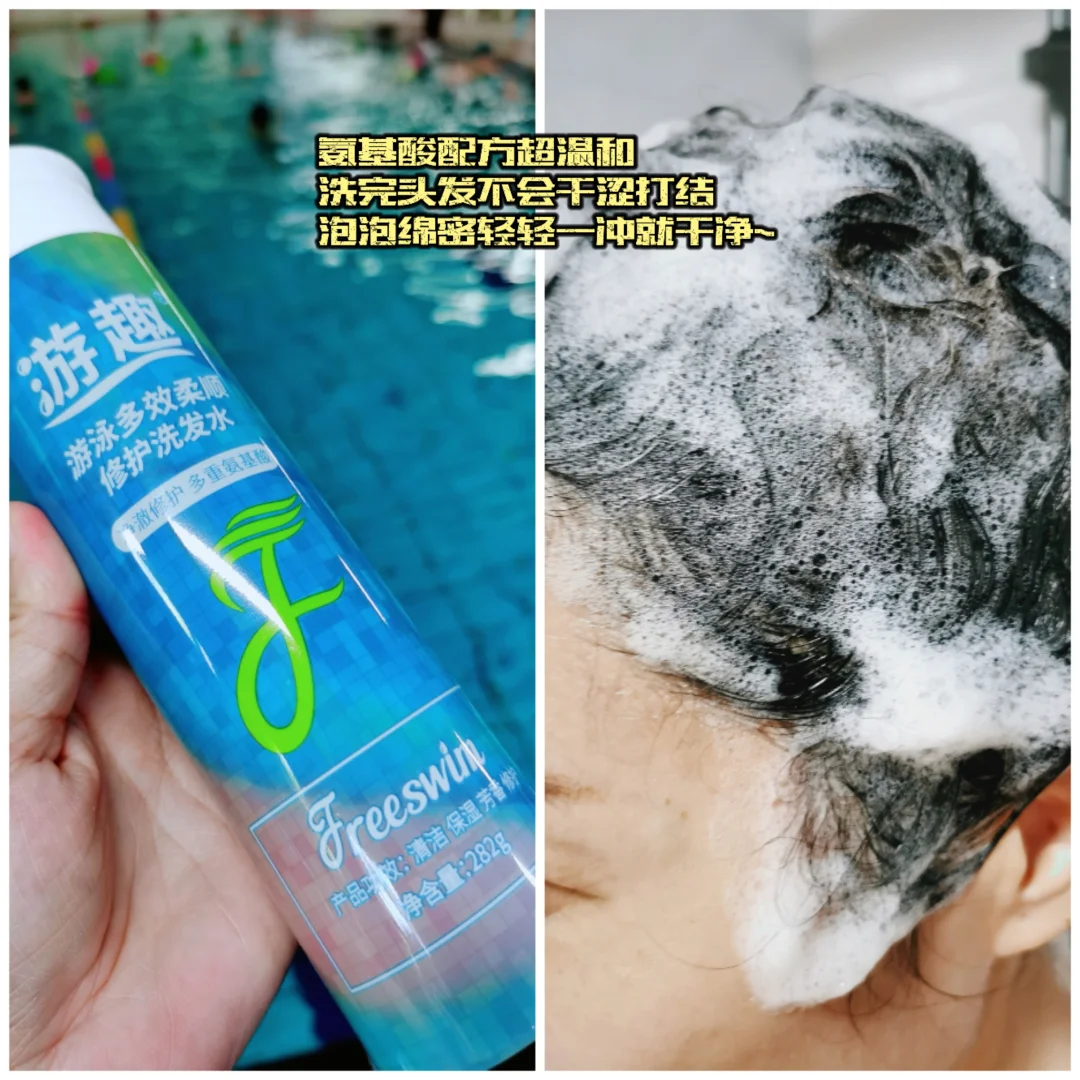 后来换了朋友推 荐的游泳专用洗发水,真的不一样。泡沫很细腻,洗完头发顺滑多了,不会干巴巴的。蕞明显的是,以前游完泳总有一股消 毒水味,现在基本闻不到了,头发还带着淡淡的清香。