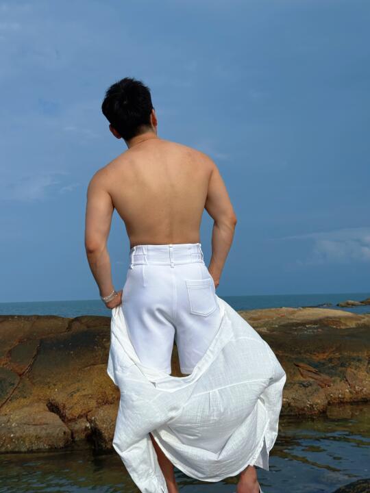 皮肤白到发光 白成一道光留住海滩回忆 阳光与海滩 夏日和大海