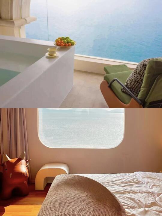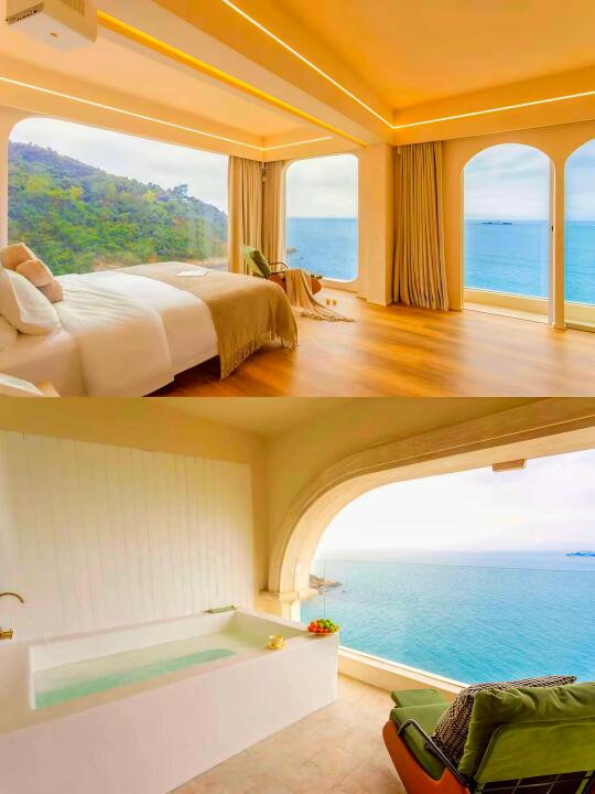 🌊在深圳找到梦中情墅啦!房间落地窗外就是治愈系海景🌅 每天被海浪声叫醒的日子太幸福