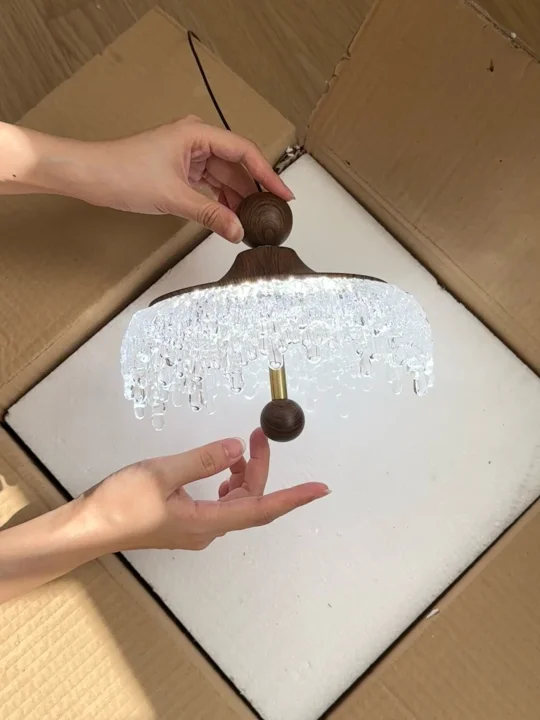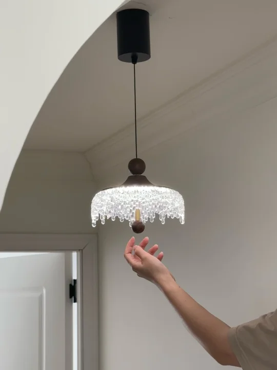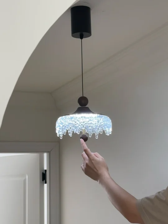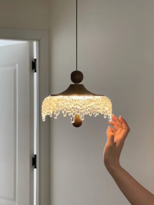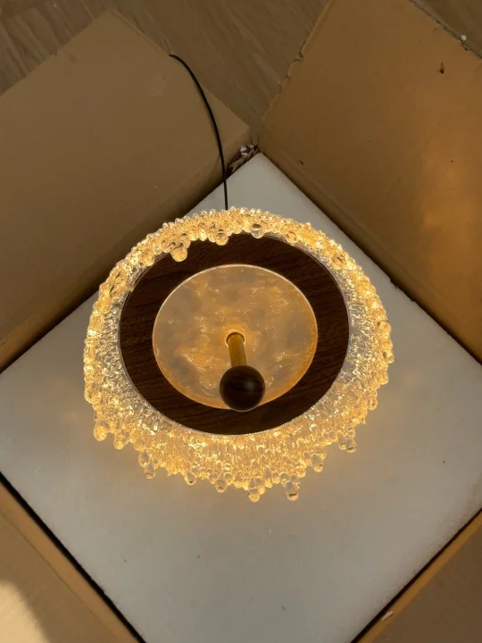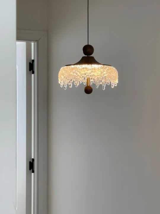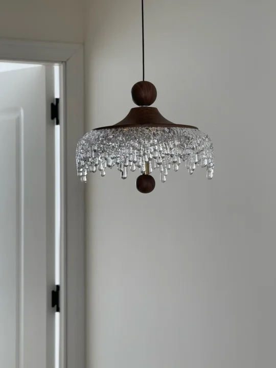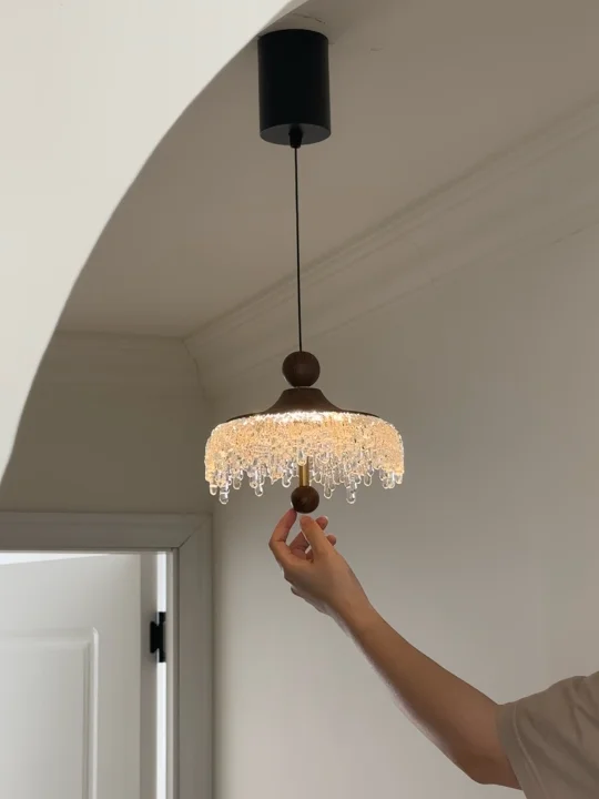 中古水滴吊灯超好 灯罩的下缘装饰着精美的水晶挂饰 水晶珠子如同冰滴一般悬挂🌟 营造出一种奢华和精致感