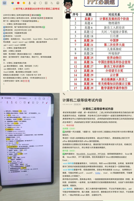 4⃣考试难度: excel > word > ppt =选择题,建议备考顺序