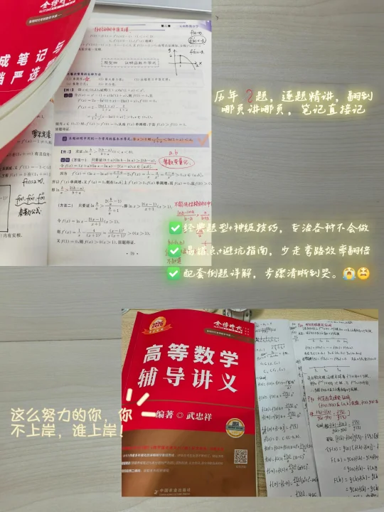 ♻️已经上岸985的宝子们给小黑学长反馈武忠祥老师的《高等数学辅导讲义》里没有一句废话,把高数zui核心、zui容易混的 20% 知识点直接给选了出来,而后面例题也全是“一步一坑”,坑坑对应一个zhen题变形,让你避开经典的错误。再搭配上《严选题》,它把历年zhen题中“看似会做、一做就错”的题全部拎出来,按难度再细分 1~5 星,被命题人藏在卷子里的“暗器”也能被你一眼发现。