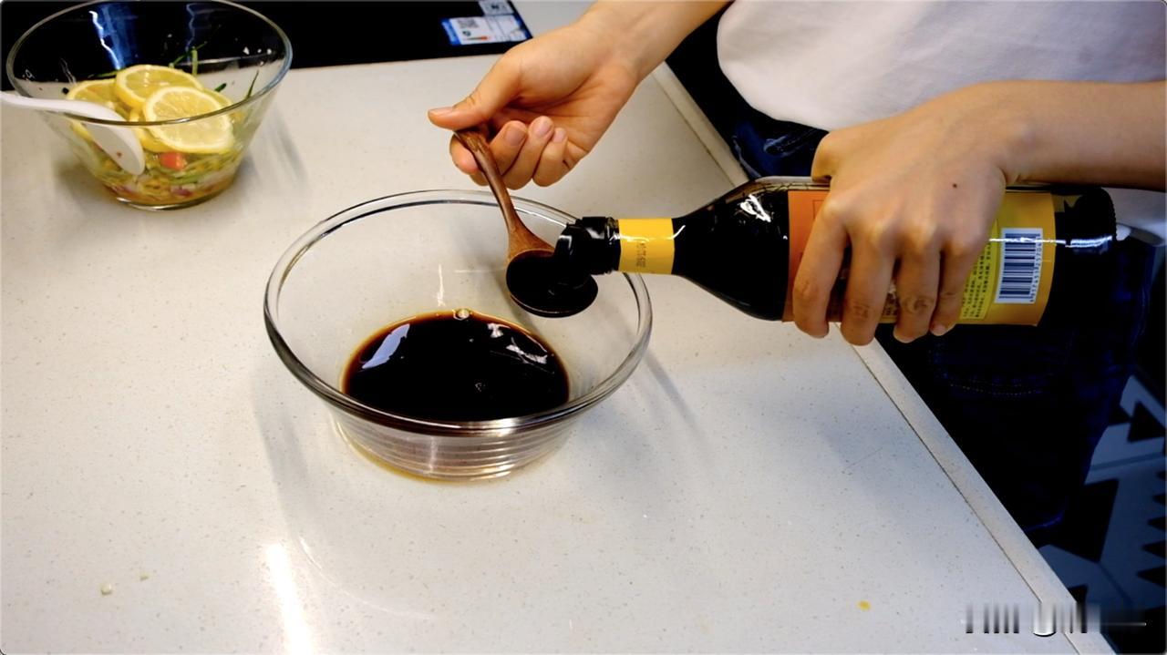 2-凉拌汁调制:2大勺生抽、2小勺陈醋、1小勺老抽、少许盐、适量柠檬汁、少许白芝麻