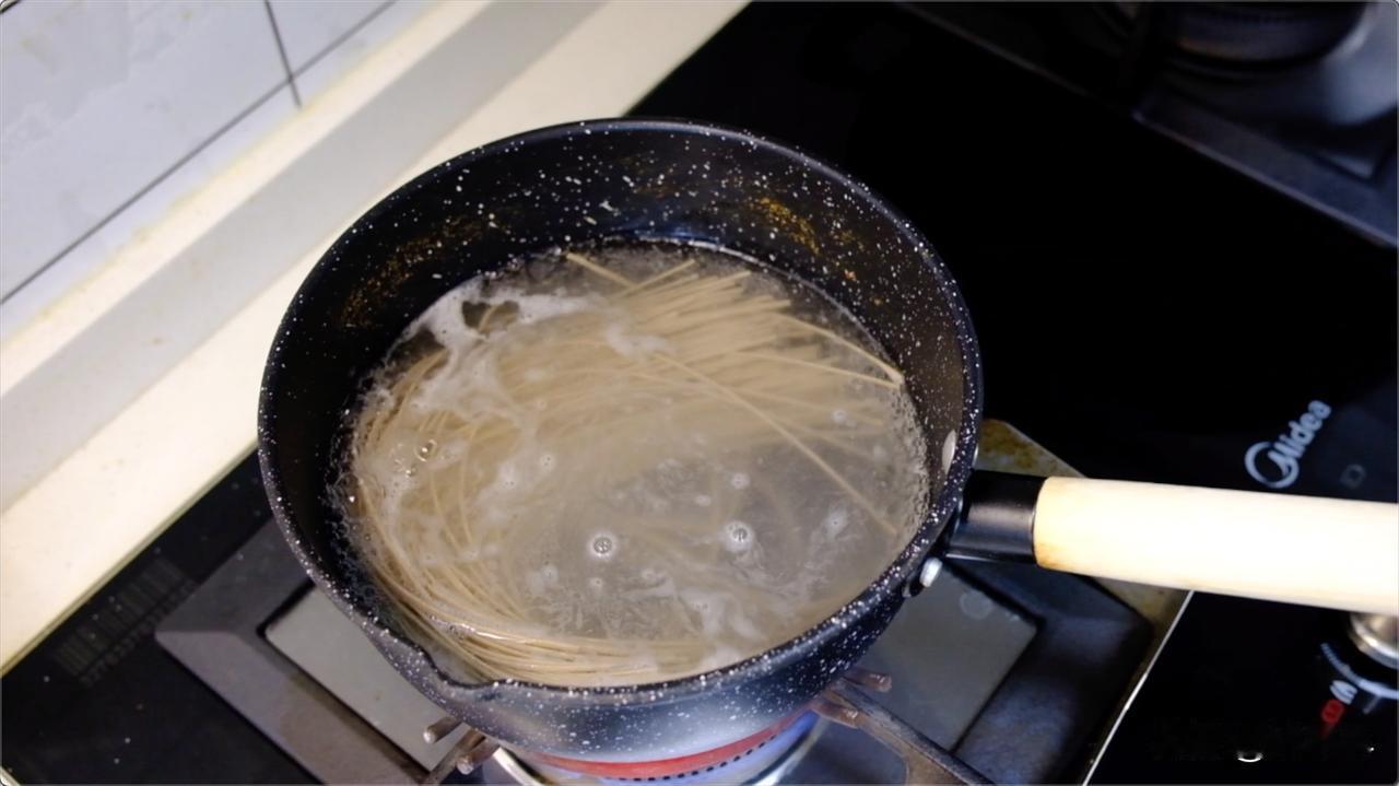 5-荞麦面适量,下锅烫熟(两人大概100-150克左右)