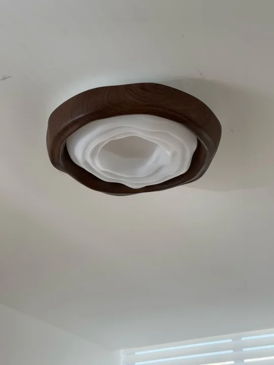 家人们谁懂啊!之前卧室的灯真的踩了好多坑, 要么开久了眼睛酸得不行,要么总觉得亮度不够, 直到刷到这个中古曲奇吸顶灯,直接把我所有顾虑都解决了! -​ 先说最在意的护眼问题!之前总担心灯有频闪、有蓝光, 晚上开久了眼睛又干又胀,这个灯完全不会! 没有频闪危害,也无蓝光,我现在睡前看半小时书, 眼睛都不会有不舒服的感觉💓 - 而且它还有高显色指数,开了之后房间里的颜色都特别真实,​ 亮度方面也完全不用担心!我之前还怕这么可爱的灯亮度不够,[飞吻R] 结果用下来完全够用。它支持智能无极调光,想亮一点就调亮, 想暗一点营造氛围也能调,💗 - 而且还有三色变光,冷光、暖光、中性光随便换, 早上起床开冷光清醒,晚上睡前开暖光温馨,真的特别方便。​[星R] 再说颜值!它那个曲奇形状真的太可爱了,看着就很有设计感, 说是原创设计果然没骗人。灯身是水转印木纹的,摸着手感特别好,搭配 PE 灯罩,质感一下子就上来了 - 而且是一体式无缝设计,不会藏灰,打扫起来也省事 尺寸也很合适,直径 54cm,高 10cm, 我家卧室层高 2.8 米,装上去一点不压抑,💘 客服说适配 3.5 米以下层高都没问题,小户型卧室也能放心入哦!
