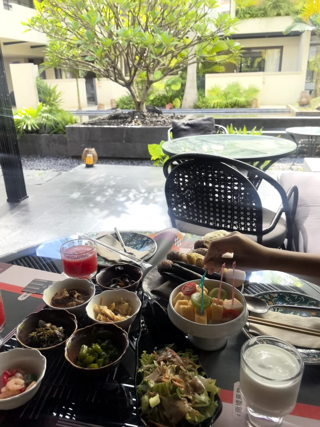 来西双版纳选了一家私密性超好 但位置很核心的艺术酒店 就在告庄星光夜市旁 吃完饭步行3分钟就可以逛夜市 老板和管家都超级好 很热情 有欢迎礼遇minibar☕智能房间细节拉满 🍴重点夸夸他家餐厅的漂亮饭 楼下就是评分很高的 灼宴·傣味融合菜[打卡R] 傣味美食好吃到尖叫 所以早餐也是东南亚菜系酸酸甜甜超级好吃 整体风格就是躺进热带雨林🌿 泳池也是被绿植环绕 泡在水里就能感受到版纳的慵懒时光 解锁了不仅适合遛娃也度假感十足的西双版纳 🏨 | 菩然艺术酒店