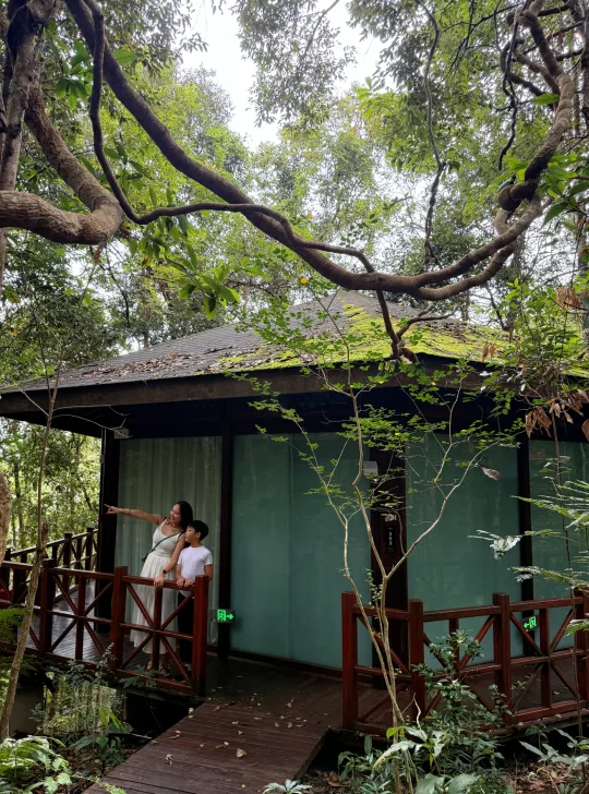 普洱的松弛感真的太适合佛系遛娃了,跟西双版纳也是完全不一样的风格和体验。因为要去普洱太阳河森林公园,所以住在了小熊猫庄园,没出酒店也没去市区,带娃妥妥在庄园满满过了两天。 第一天中午抵达,办理入住[庆祝R] [打卡R]13:00-16:00 太阳河森林公园,走进原始森林小动物的家,做犀牛义工体验了给白犀牛喂食搓背,与网红小熊猫和其他小动物进行zui亲密的互动。 [打卡R]18:30-20:00 湿地餐厅,白鹭野鸭伴随用餐 [打卡R]20:30-22:00 夜观昆虫+放飞萤火虫。可能是生态太好了,第一次看到这么多萤火虫,放飞萤火虫真的好浪漫! 第二天用完早餐,开始体验亲子项目[庆祝R] [打卡R]10:00-11:00 飞越丛林,有20个关卡,大人孩子都爱玩 [打卡R]11:00-12:00 云南虫谷,制作昆虫标本、琥珀、松果等 [打卡R]14:00-15:00 雨林找蘑菇,背着小竹筐雨林寻找🍄 [打卡R]15:00-17:30 上山采茶、炒茶、手工制作普洱茶饼