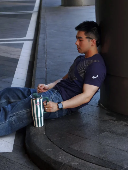 分享前段时间买完东西出来看到的落日,即刻席地而坐拍了几张。之前日本行淘到的短袖没想到如此适合在夕阳里拍,构建出一种只属于夏天的独特对比色。 ps:没想到水杯也成为穿搭拍照单品了。