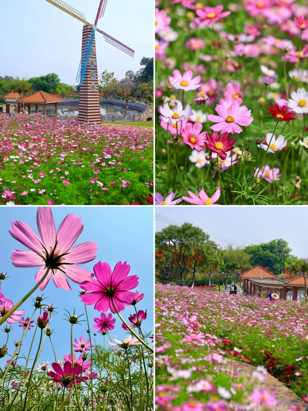 就在番禺莲花山,百花园的波斯菊,紫荆花,三角梅等等多种花已经盛开,趁现在天气不错,可以冲啦