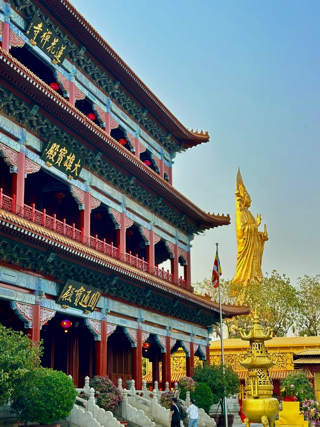 ·莲花城,上二楼城墙的机位可以拍到与望海观音,大雄宝殿同框。(16:30关门,注意时间)