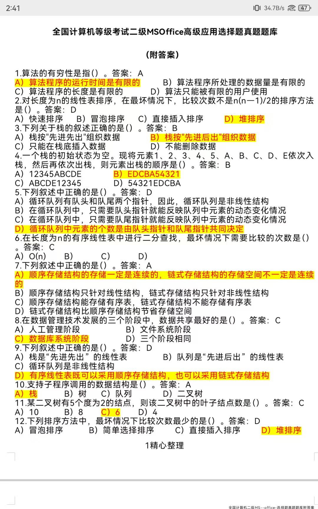 小伙伴们备考3月的计算机二级考试的同学,选择题可以现在开始刷起来了。
