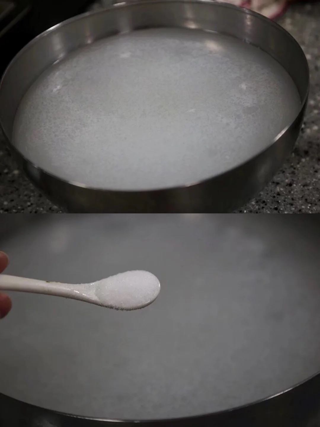 8.倒入弄好的米汤水 ,记住水别放太满,只要保证等会石头压下去之后盖过芥菜就行 如果水太多的话发酵会溢出来 记住哦
