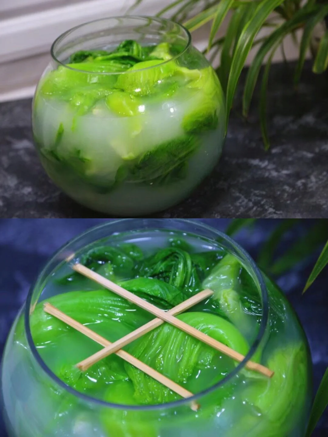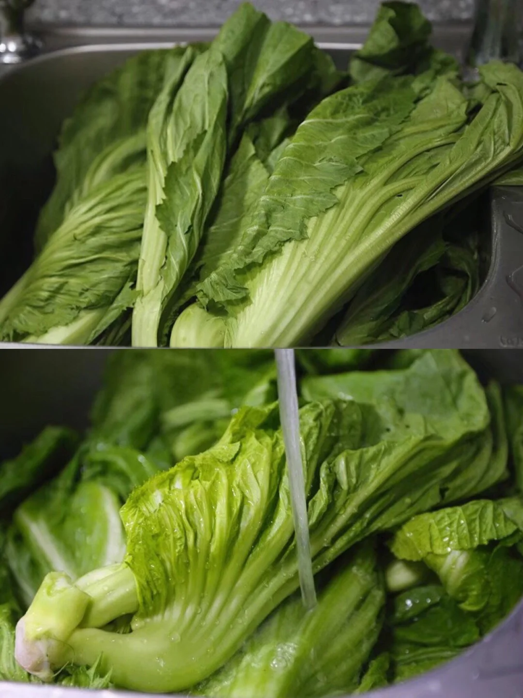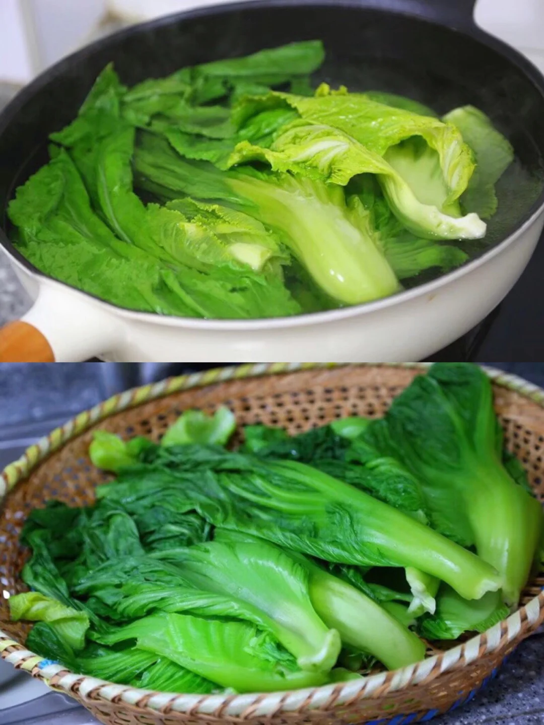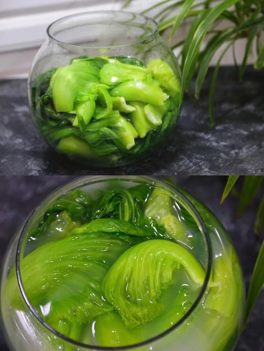 2.全部拆开清洗,本来想买小颗的 但是快递来都是大颗的也好,反正喜欢吃梗的部分,酸脆开胃 3.煮锅里上水,烧开加入洗净的芥菜 速度一定要快哦,我的因为大颗,所以分批次弄得 用筷子压下叶子,开水全部烫到两到三秒左右就要捞出来