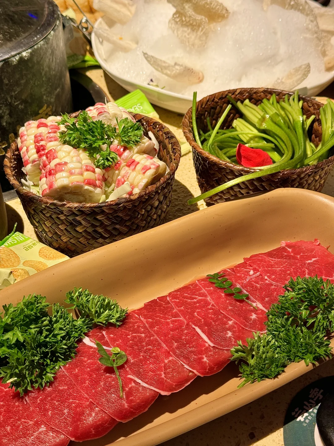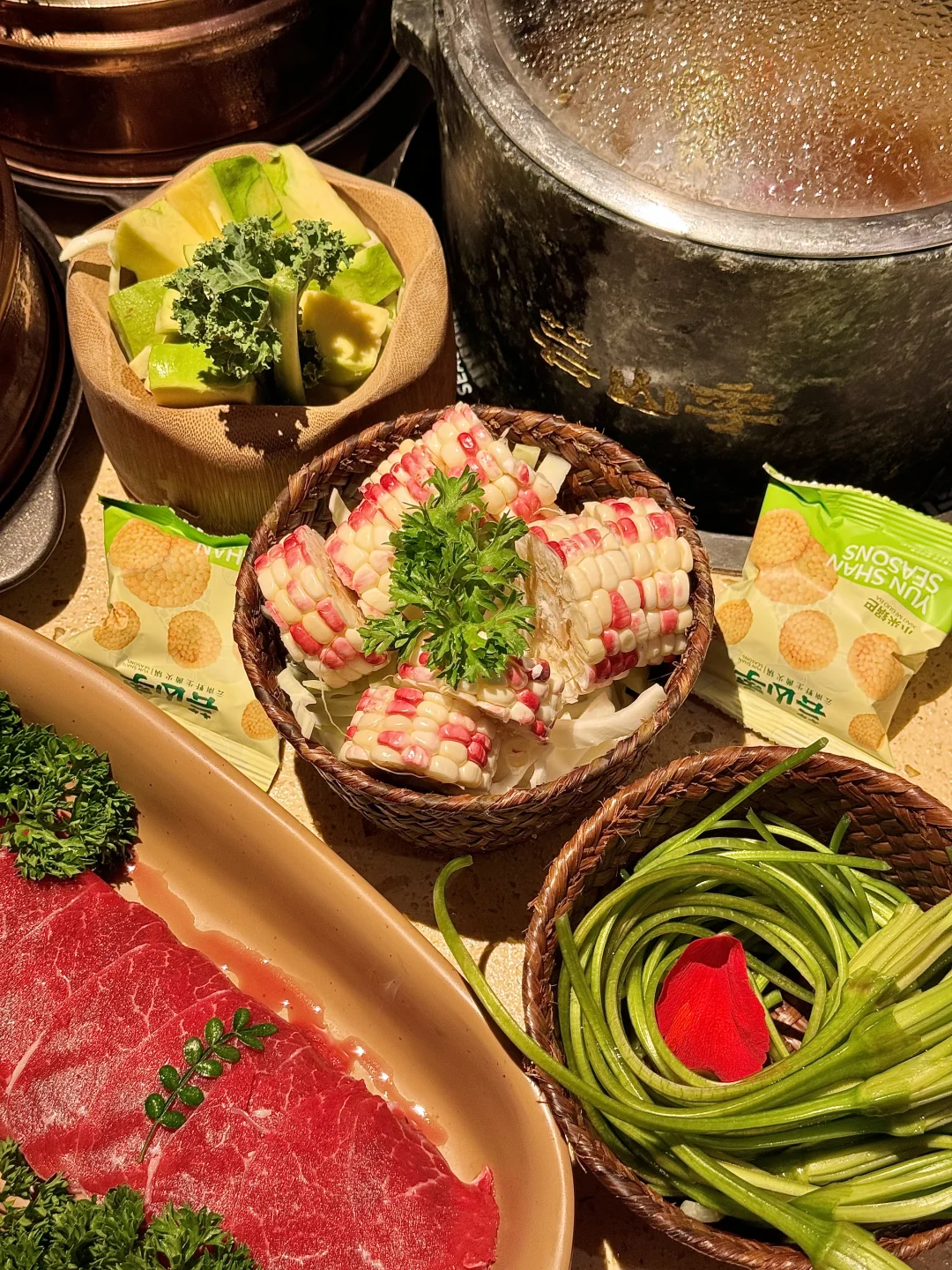 还能DIY吃法!虾滑裹响铃卷再配鲜切牛肉,一口下去层次感直接拉满,有趣又好吃~