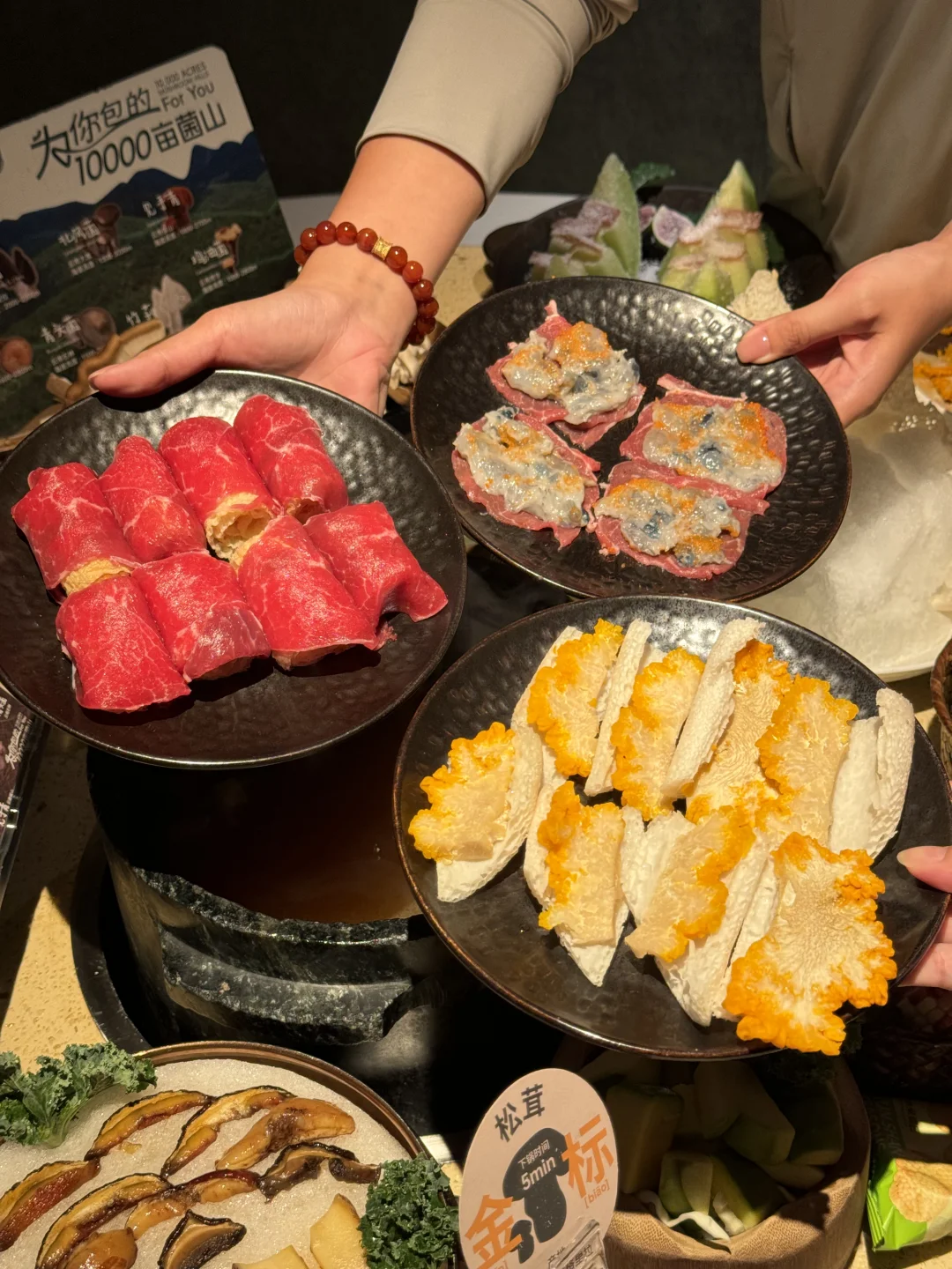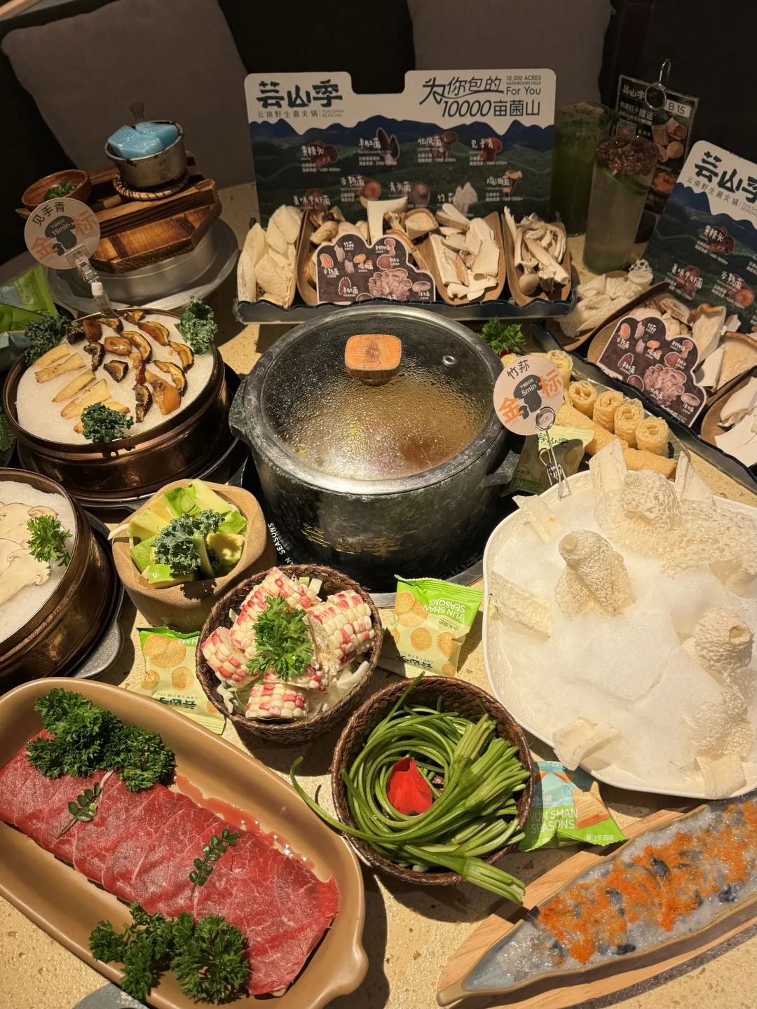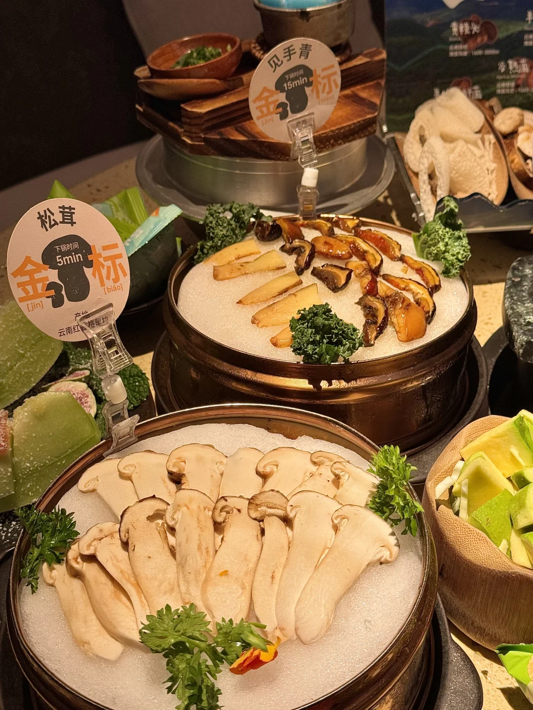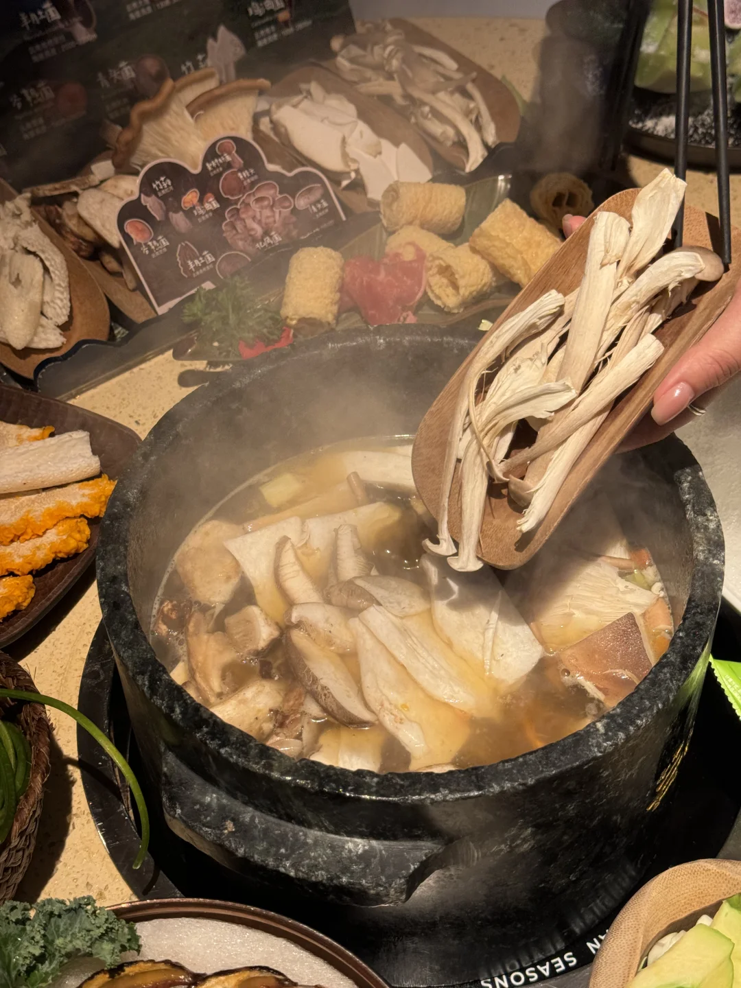 雪山松茸、金耳菌、竹荪配见手青,嚼着脆嫩弹牙,吸满汤汁后鲜到说不出话,记得一定要多煮会儿更入味!