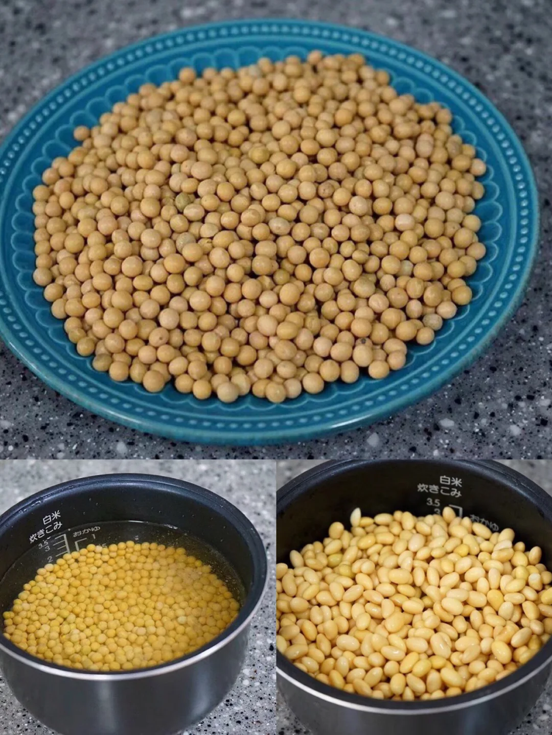 2.清洗干净以后吧睡觉前用水泡上,记住一定要用大一点的容器,豆子泡一下会发胀 然后你们懂得水就会不够了,水一定要多放一点