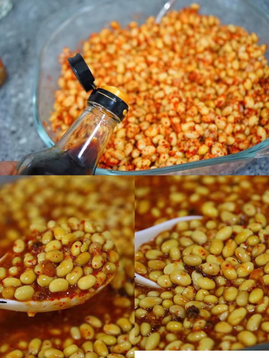 8.发酵好的豆子还是热的呢 用勺子搅拌一下