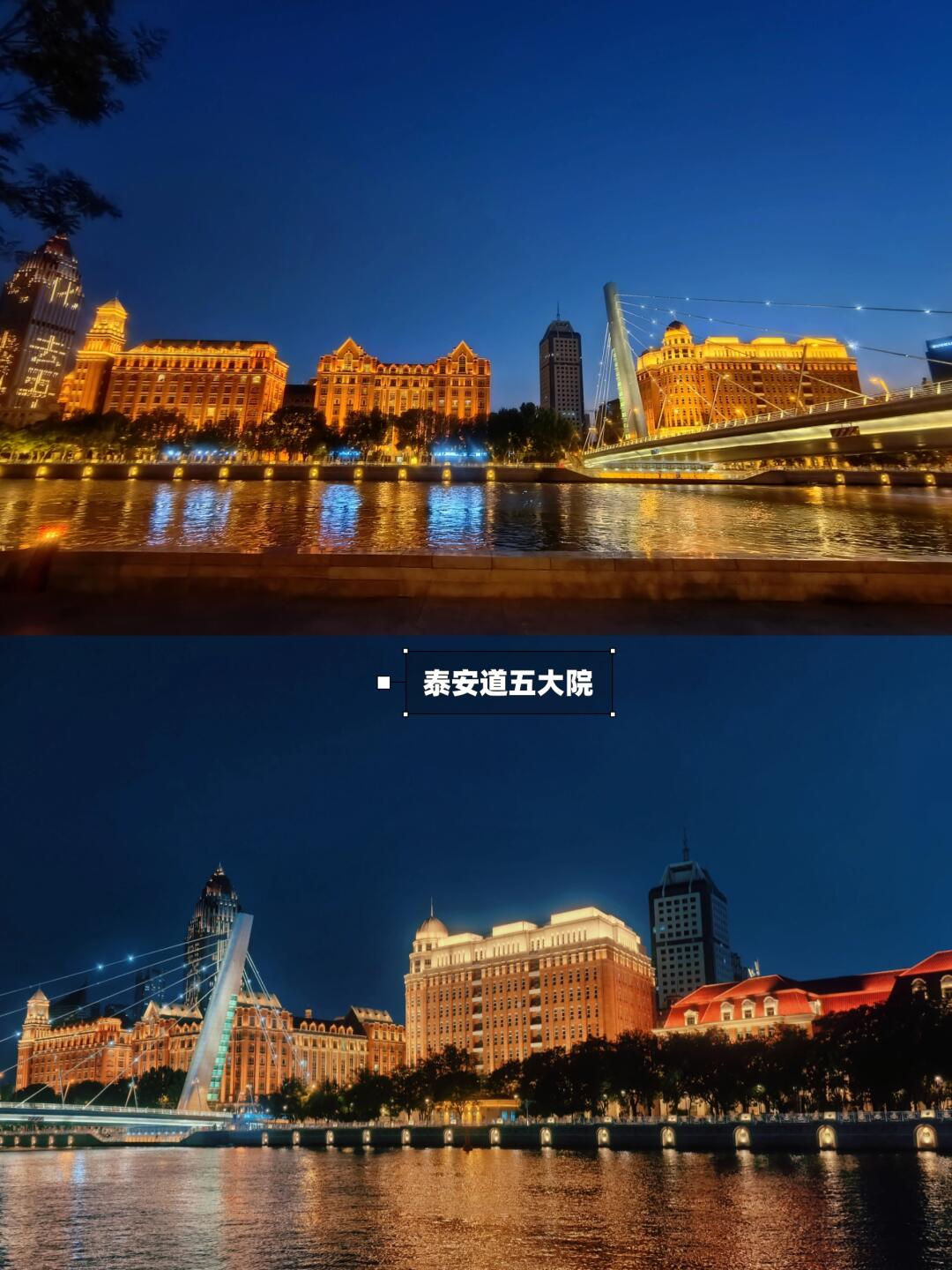 上合时期的天津 你一定要来 ! [打卡R]如果你是来天津旅行,海河夜景绝不能错过,只去精华路段就🉑,可以从泰安道五大院出发,打卡网红街景咖啡店安里甘教堂 和12stay咖啡馆 ,然后沿着丽思卡尔顿到海河边,步行至解放桥,打卡世纪钟、津湾广场夜景,再步行至天津小塞纳河畔,到大沽桥和北安桥等亲水河边喝上一杯。最后趁夜色降临前,到天津之眼。 [打卡R]海河蓝丝带跑步路线: 利顺德酒店对面-大光明桥-金阜桥-刘庄桥-春意桥(上桥过河折返)-棉三创意街区-富民公园-金茂汇-赤峰桥-解放桥(世纪钟、津湾广场)-大沽桥-北安桥-金刚桥-狮子林桥-天津之眼