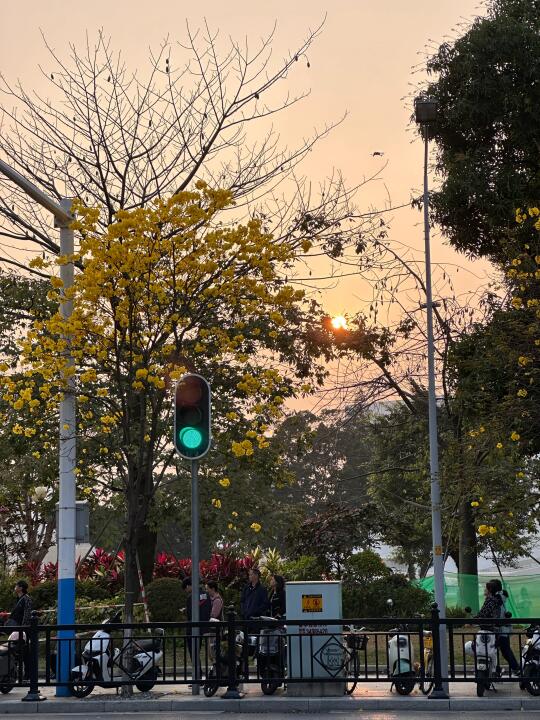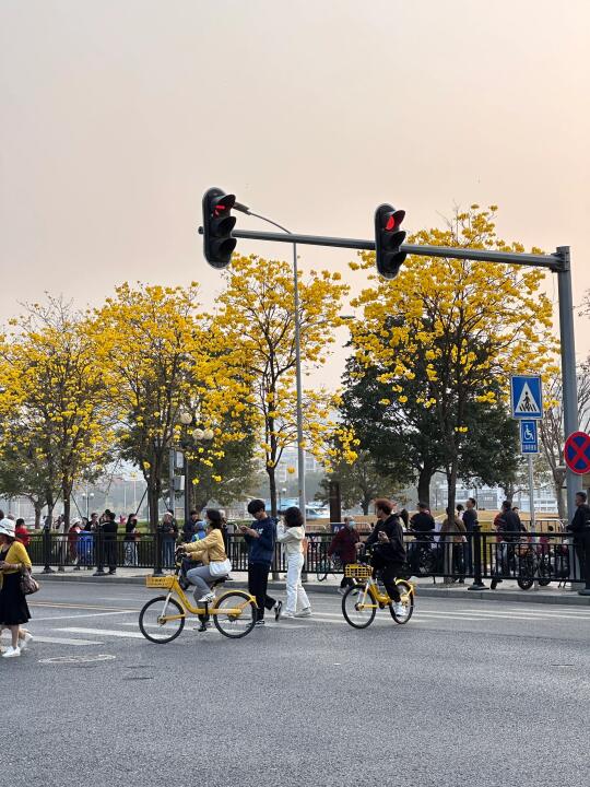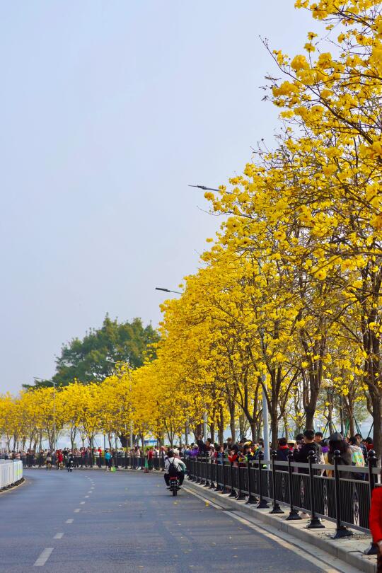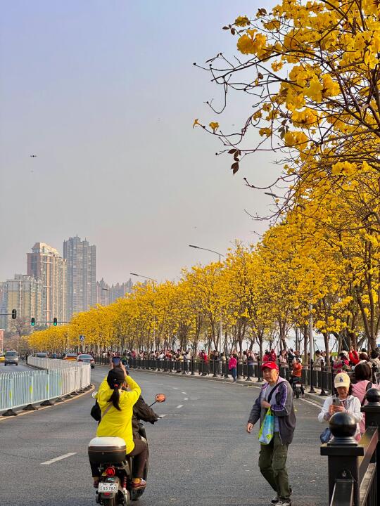 广州这一段路的黄花风铃木抢先盛开啦 今天(2/18)拍的,花期还能撑上一段时间 最近天气还不错,可以冲啦[派对R] 这里是洲头咀公园-环岛路沿路的 吸引了很多人来[偷笑R] 📍:洲头咀公园 交通:8号线同福西d口步行几分钟