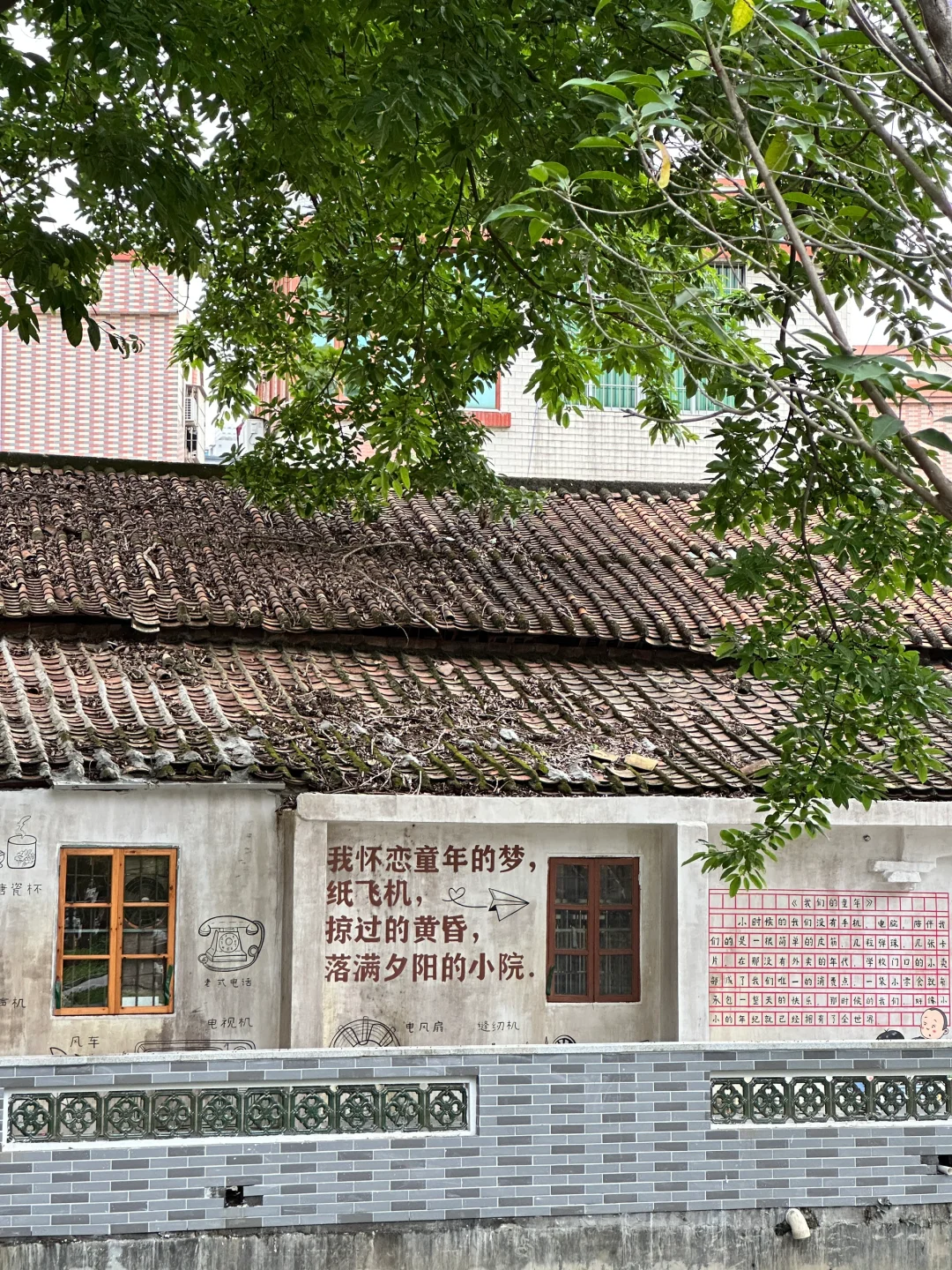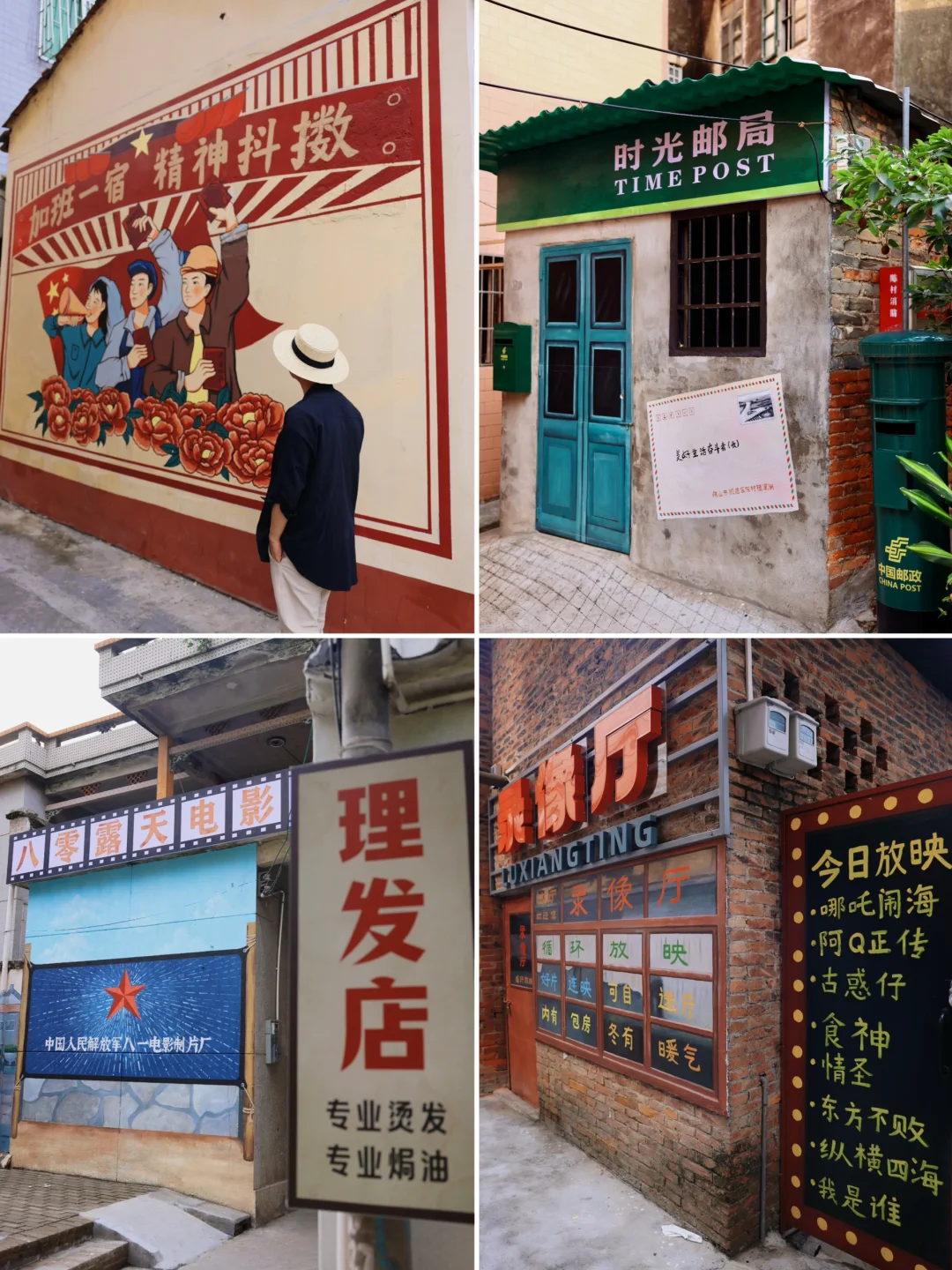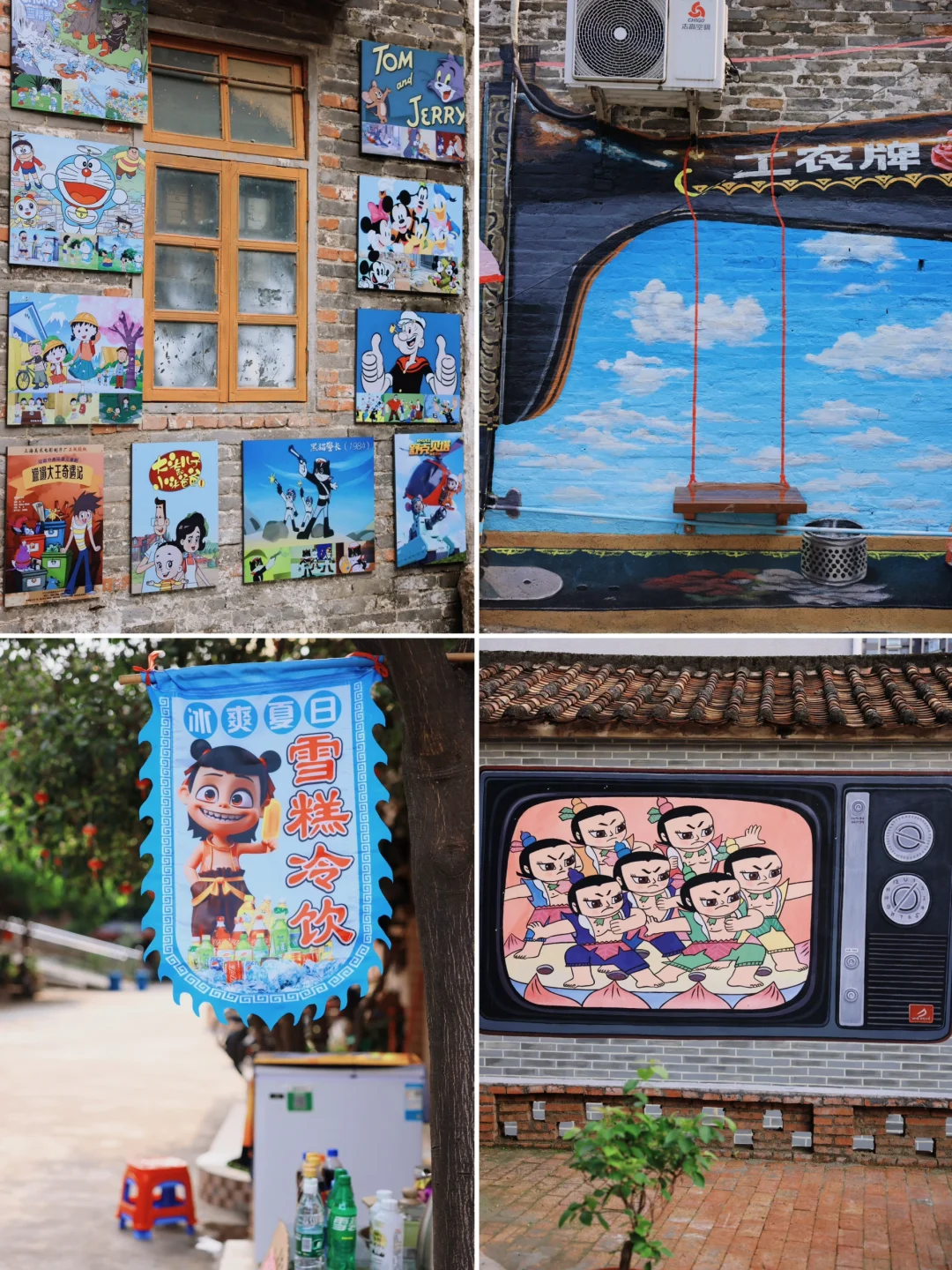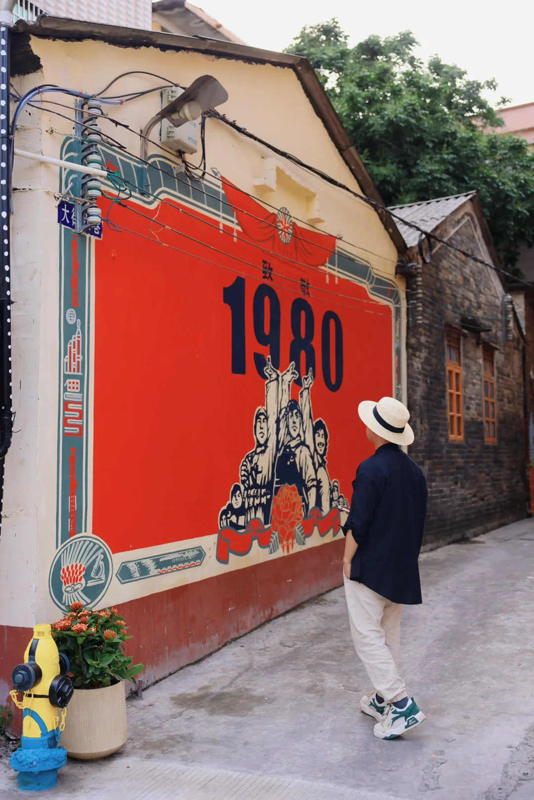 逛居民楼前很多80年代的墙绘,贴纸和老物件