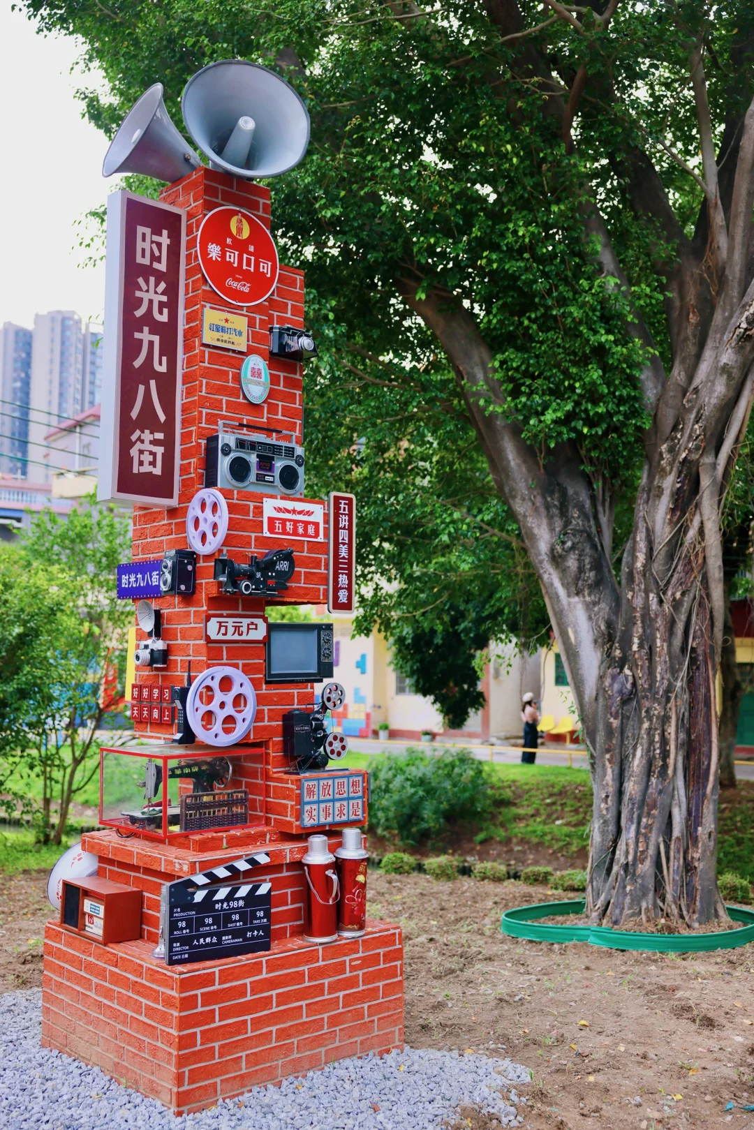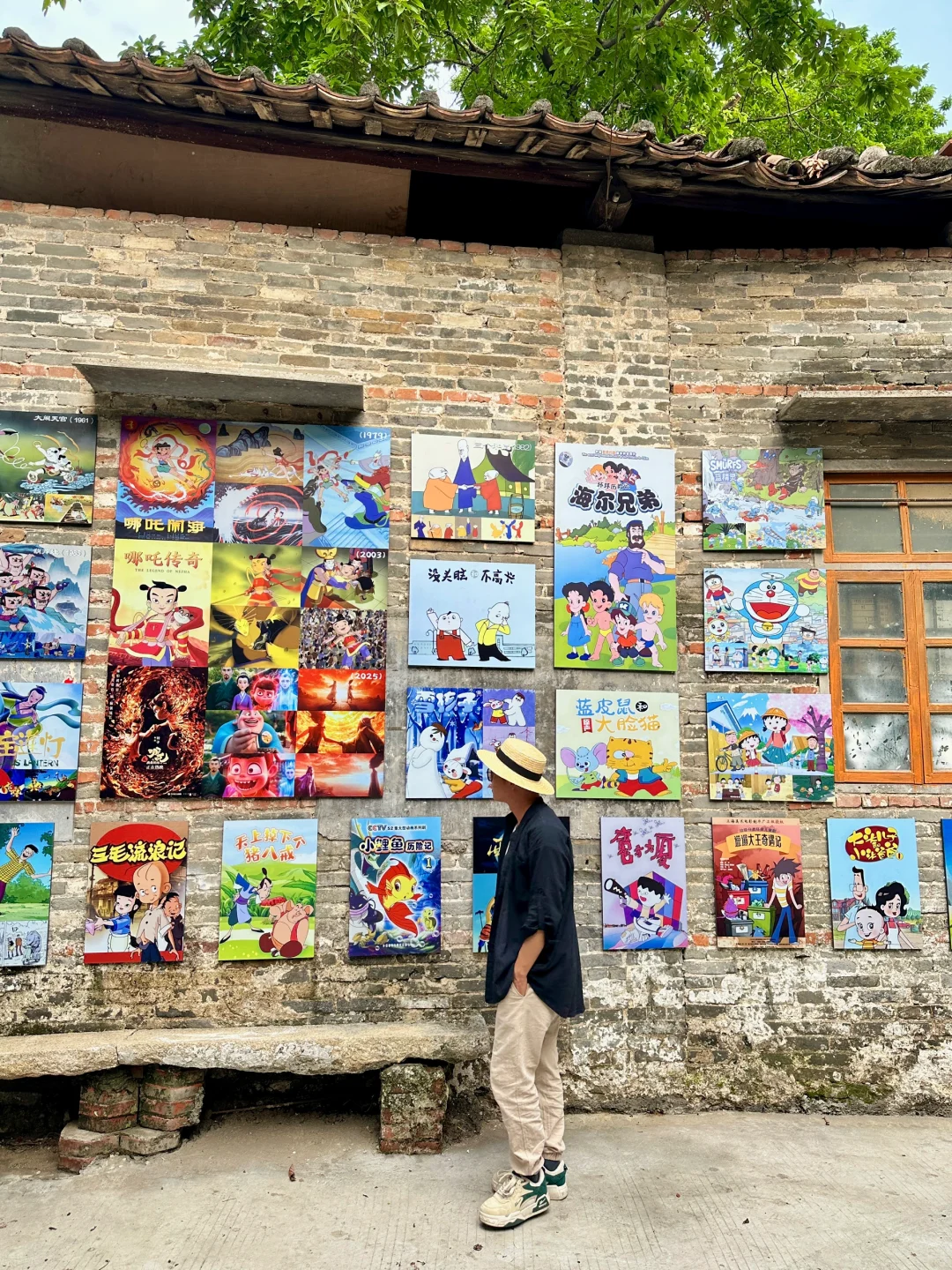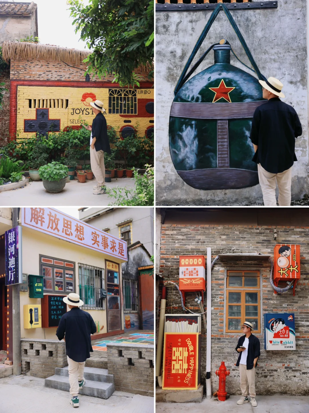 逛居民楼前很多80年代的墙绘,贴纸和老物件