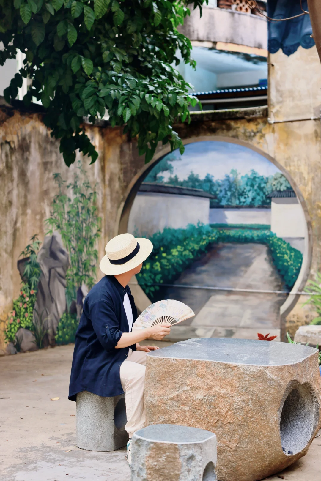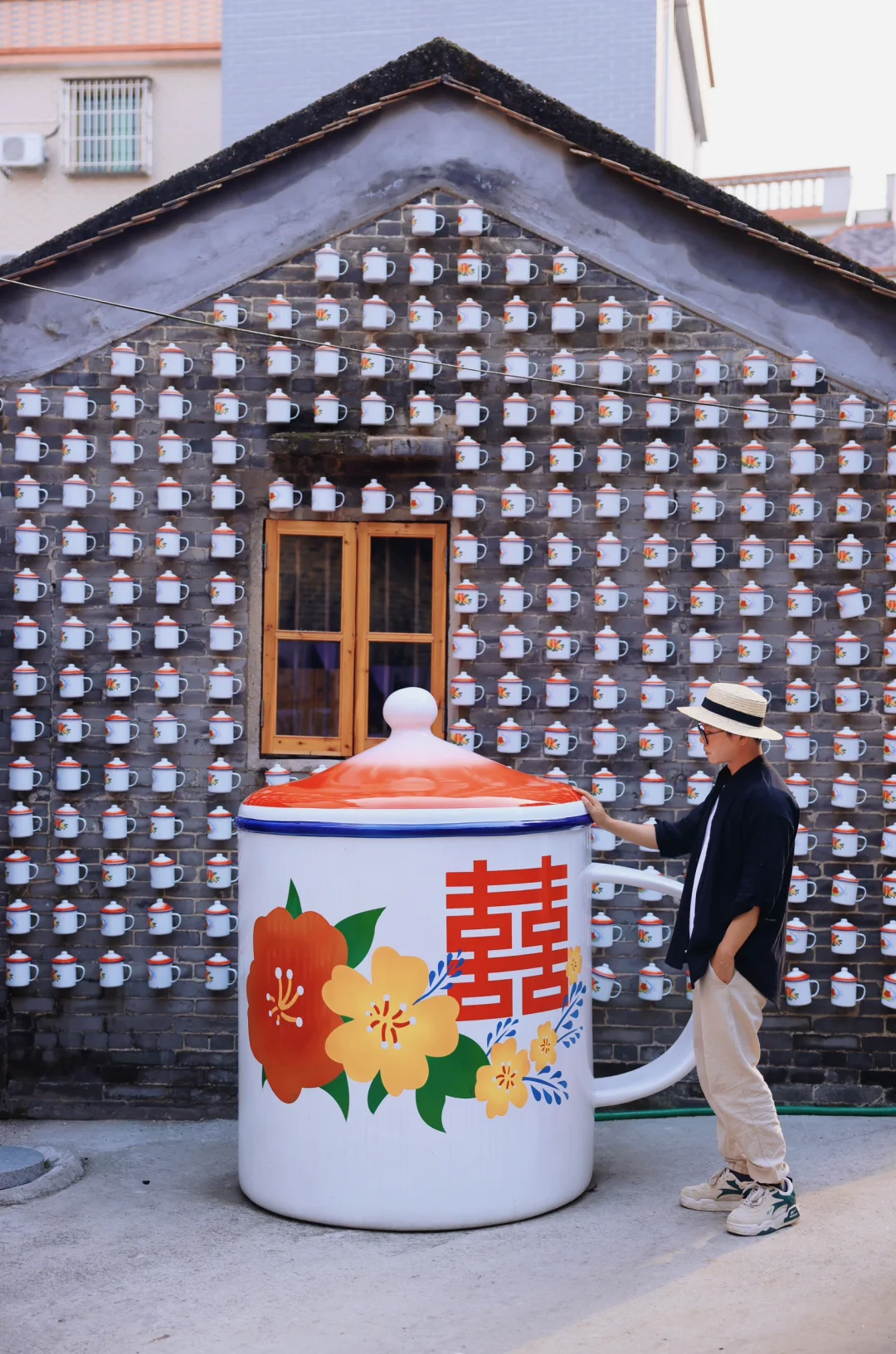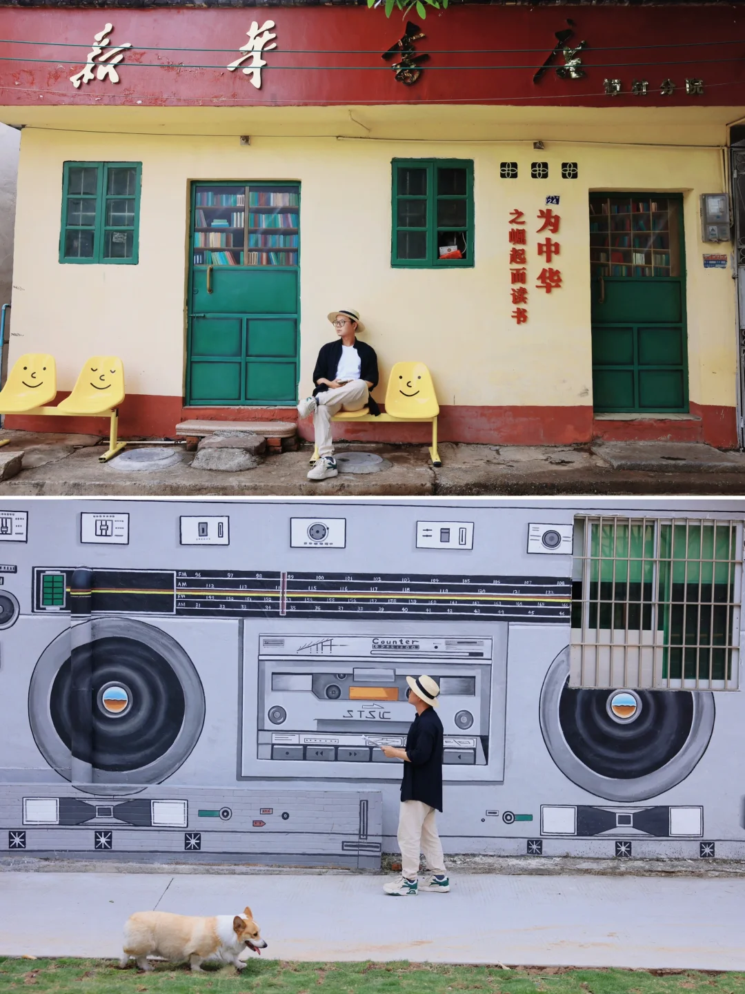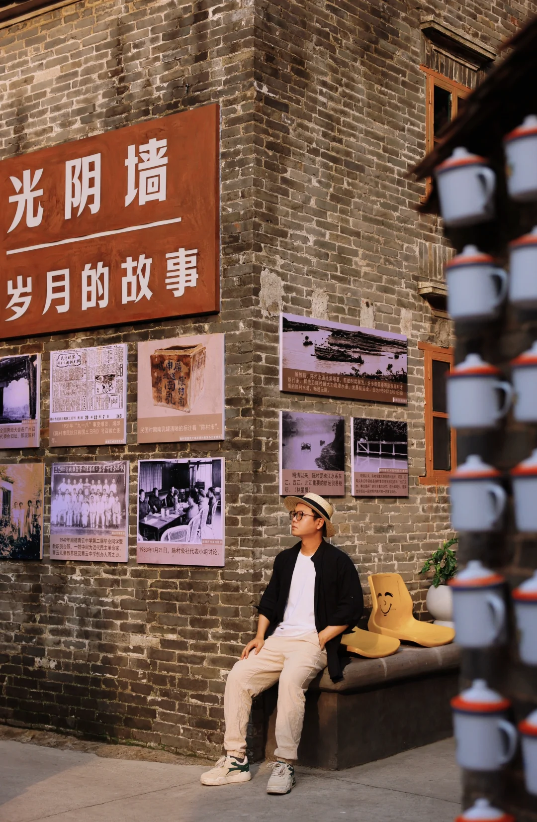 逛居民楼前很多80年代的墙绘,贴纸和老物件