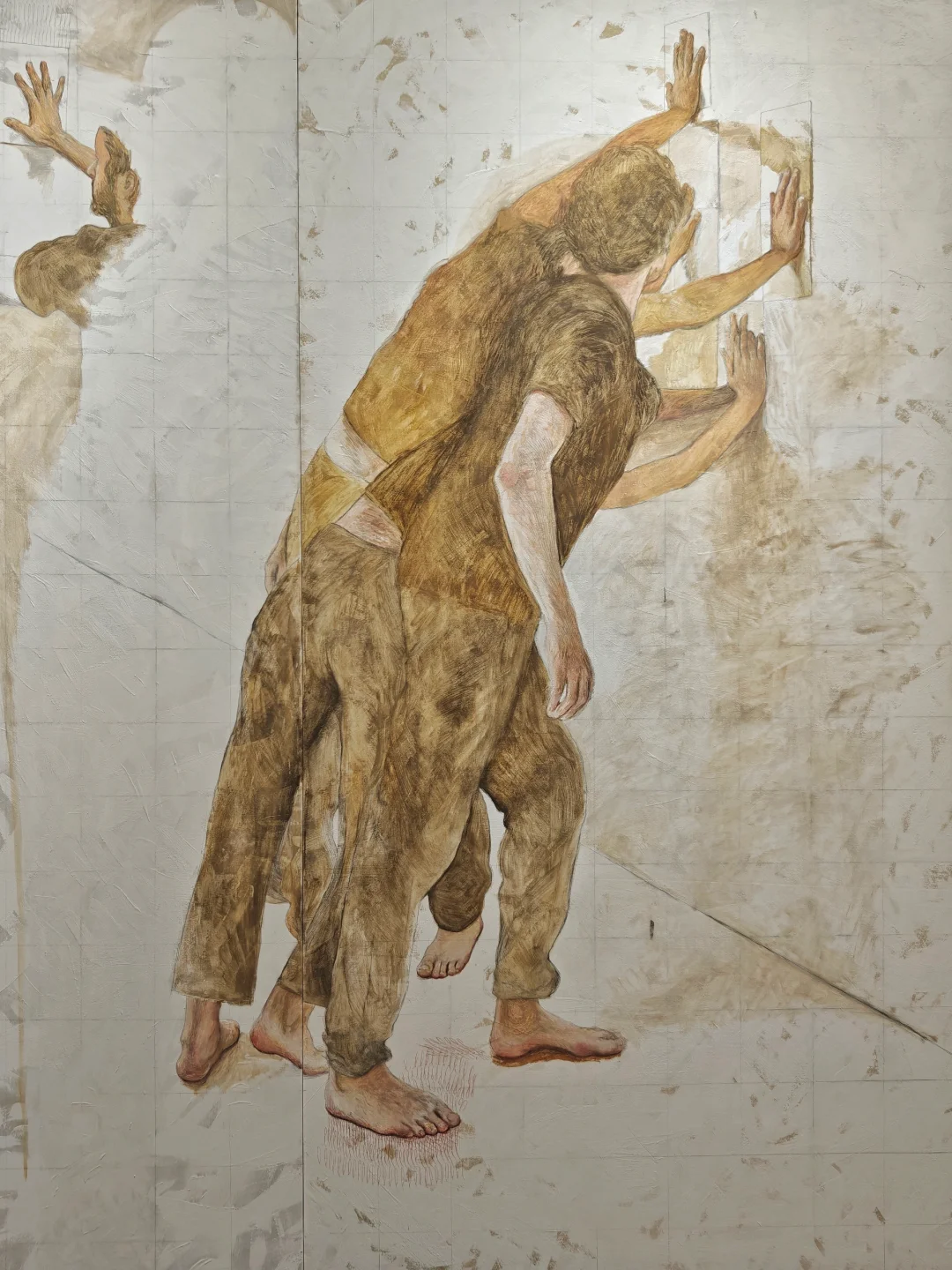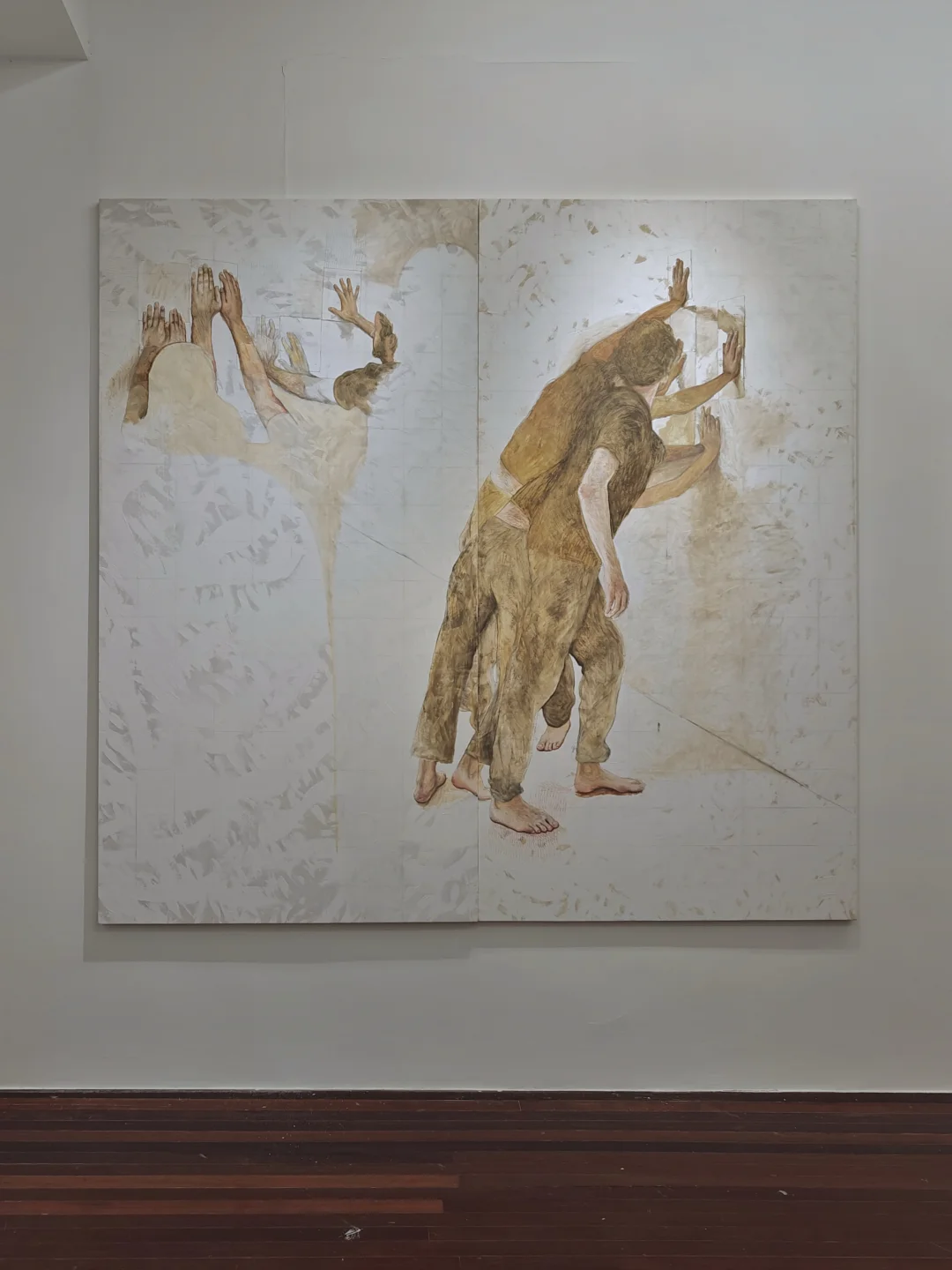 行为表演记录画作《Chain》,通过身体与空间的互动,重构原始仪式的当代意义。