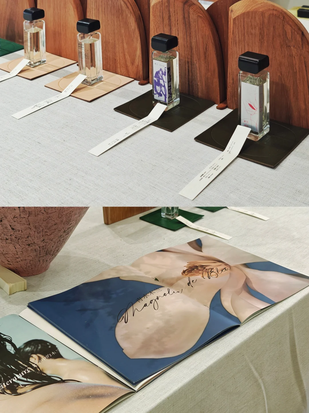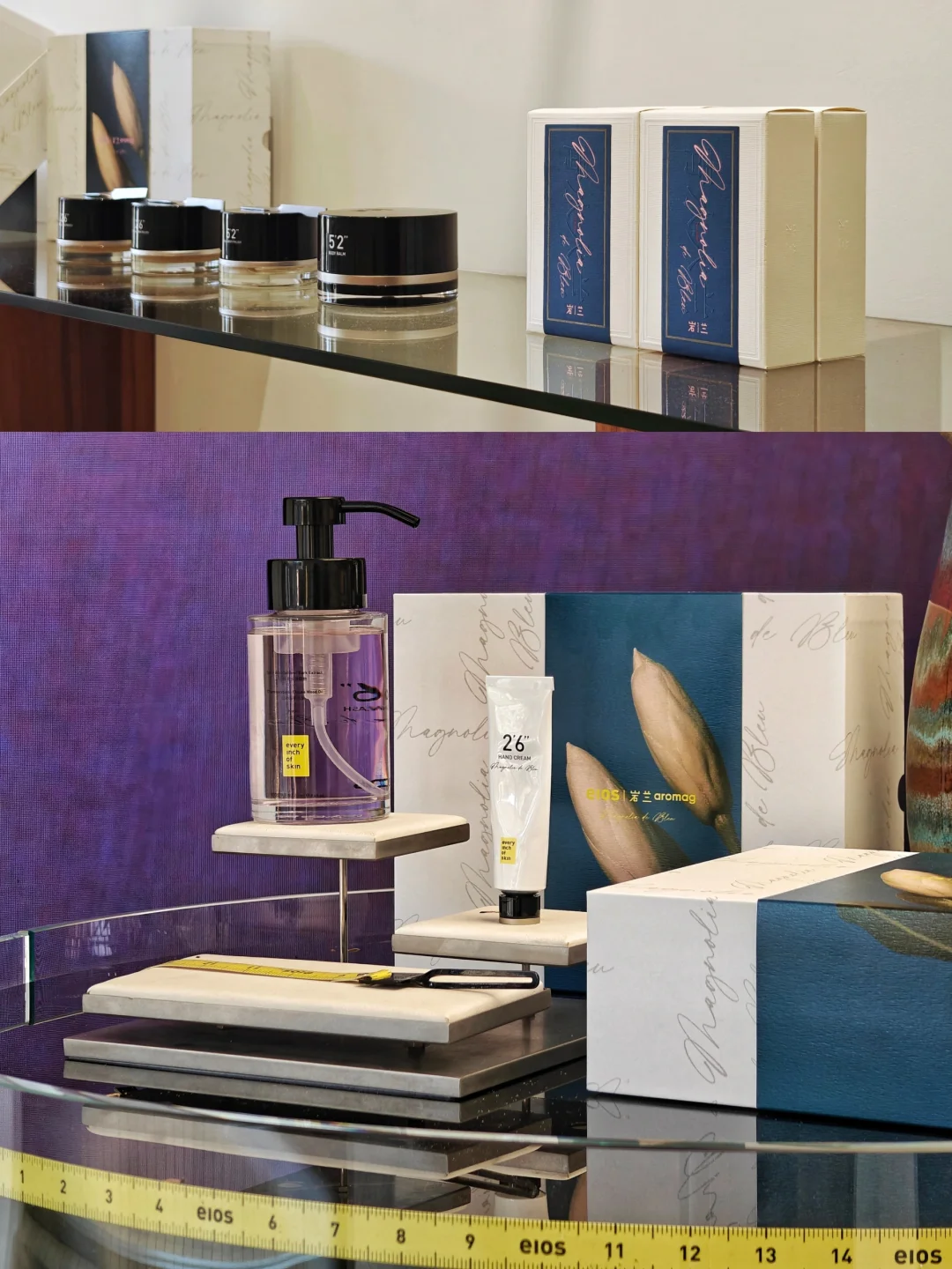 🌸EIOS这一次的春季特展是它家和国产小众高端香水品牌岩兰aromag合作出品的Magnolia de Bleu(青水木兰)系列,应该也是受了这一景色的启发。包含洗手液和护手霜,同样有其不可或缺的漂亮礼盒可选择。