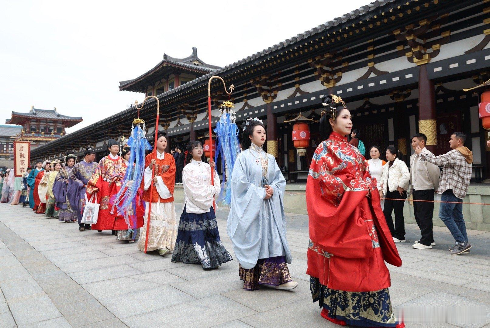 今日是11月22日汉服出行日,汉服同袍齐聚襄阳唐城,以汉服为媒,共赴一场跨越千年