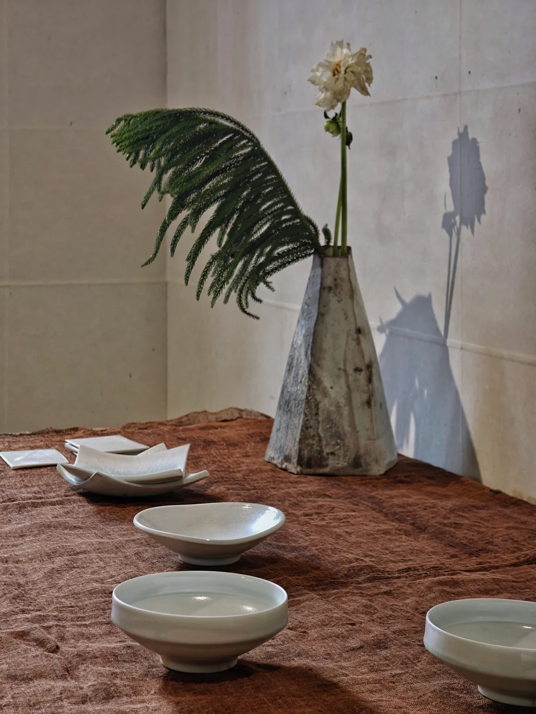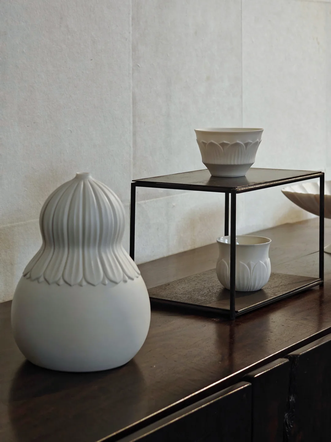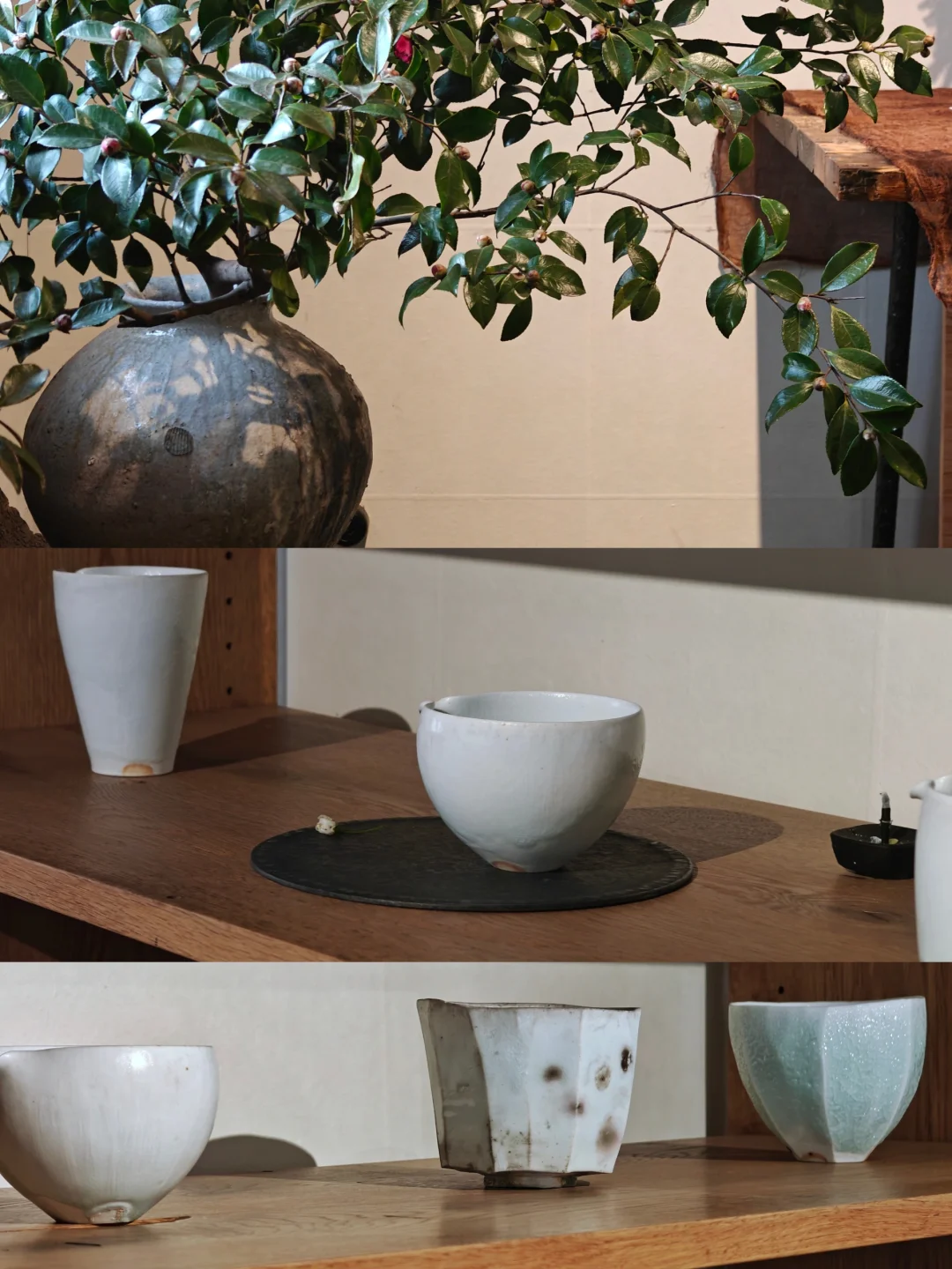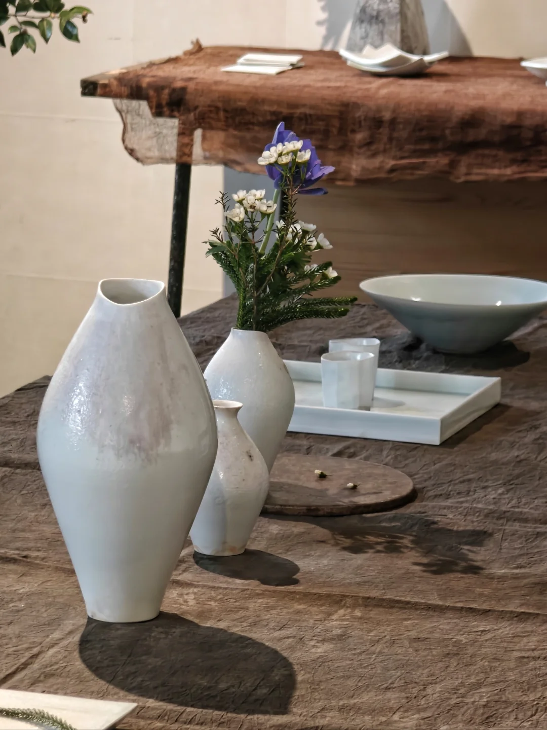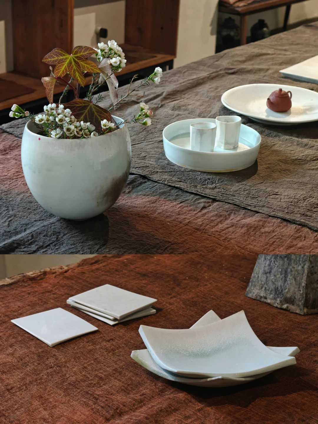 👉同时还有上一个展览《无香》的部分器物留存,若杉圣子则是完全另一种风格,同样是白瓷,精致简约,有着考究的线条,又是完全另一种风格。