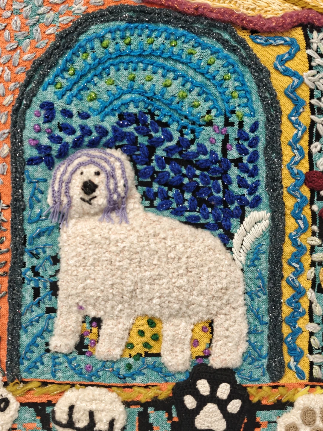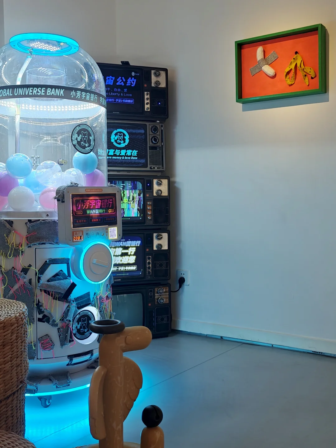 在“小芳宇宙银行”系列中,《动物国》《卡通国》用毛线和综合材料构建奇幻世界,鼓励母辈创作,唤醒女性自我认知。
