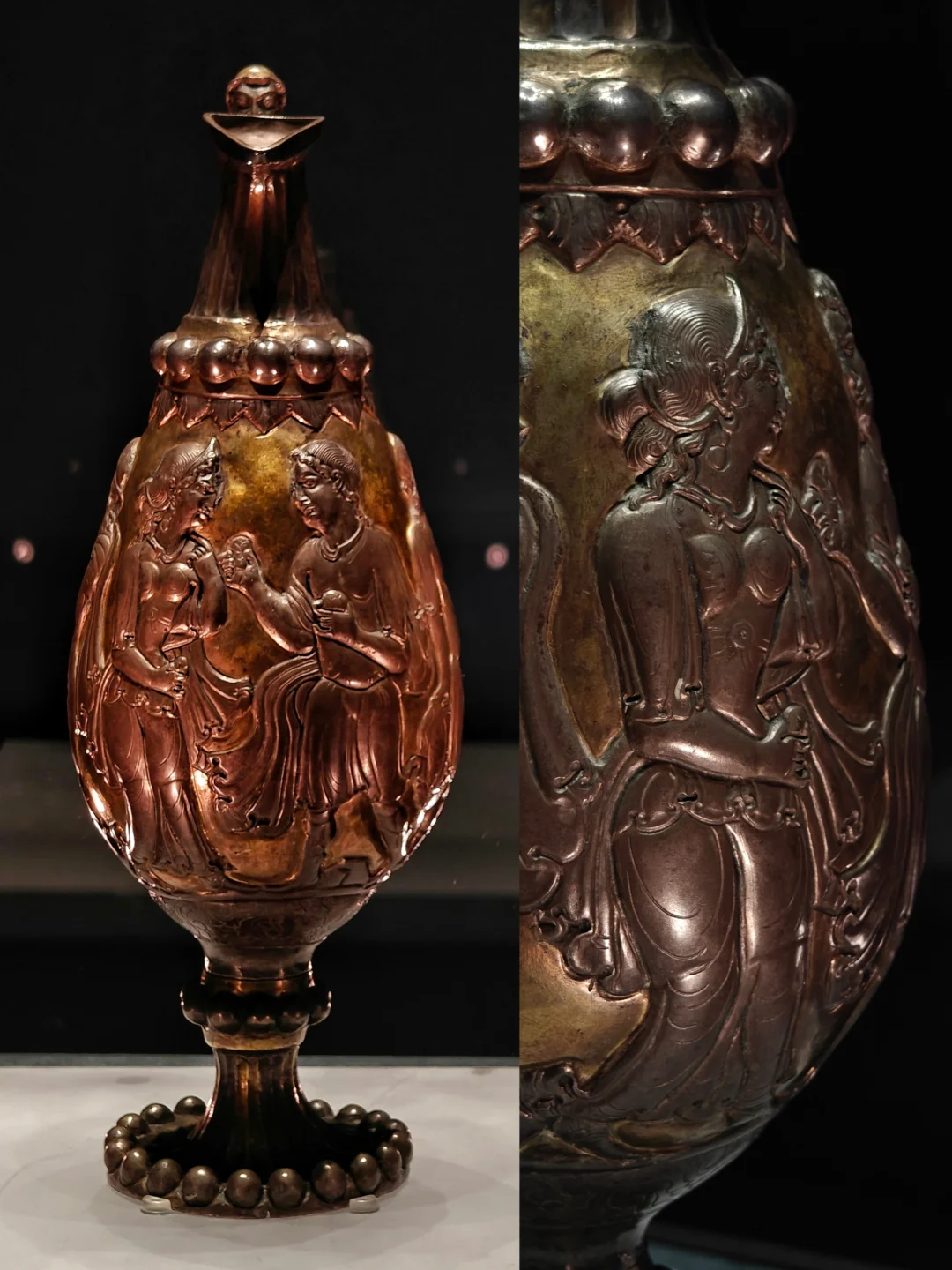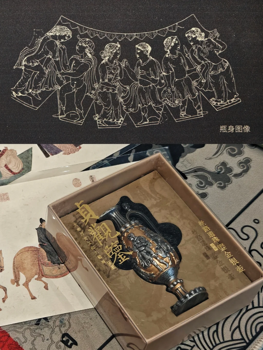 🔸这只“胡瓶”的来历应该是:古希腊的故事传播到了波斯➡️波斯的匠人根据外国故事制作了这个银壶➡️经过丝绸之路,银壶来到了北周,被李贤收藏。可以说是一部微缩的丝路史诗