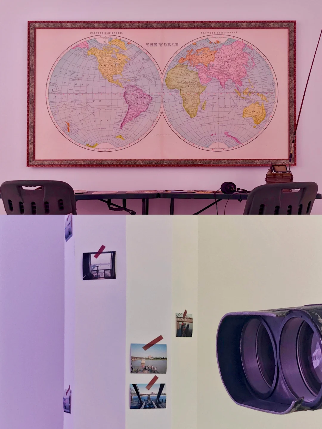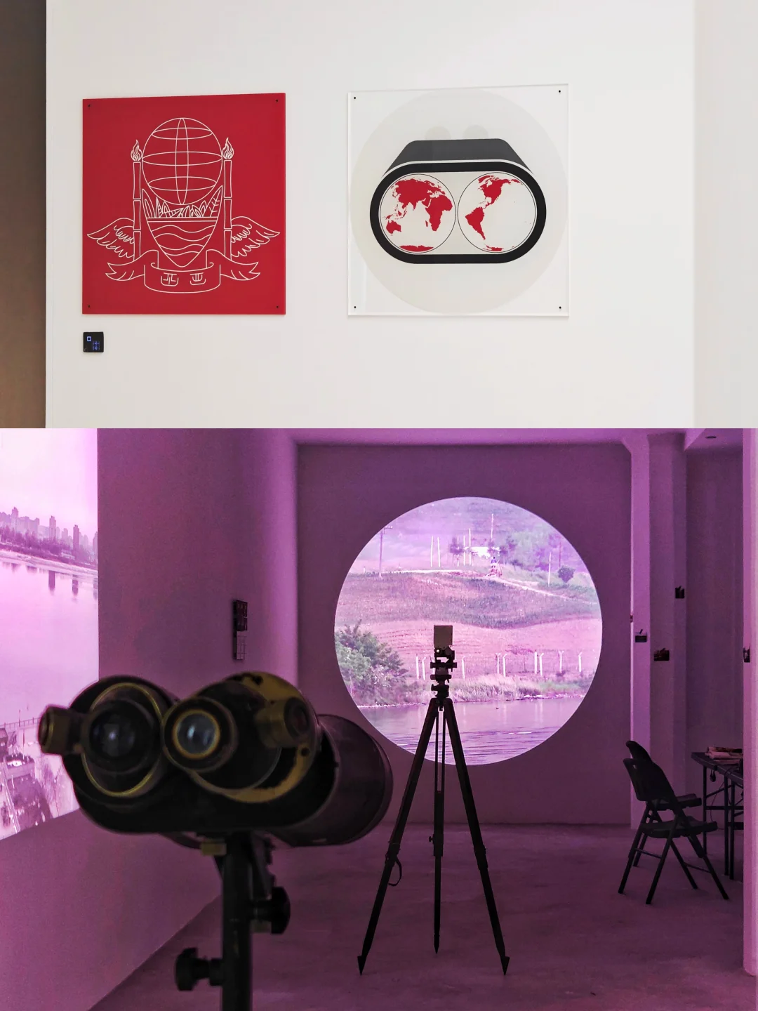 将童年住宅、边防哨所等地的时空图景叠合复写,借助书籍、影像等多种媒介探索空间