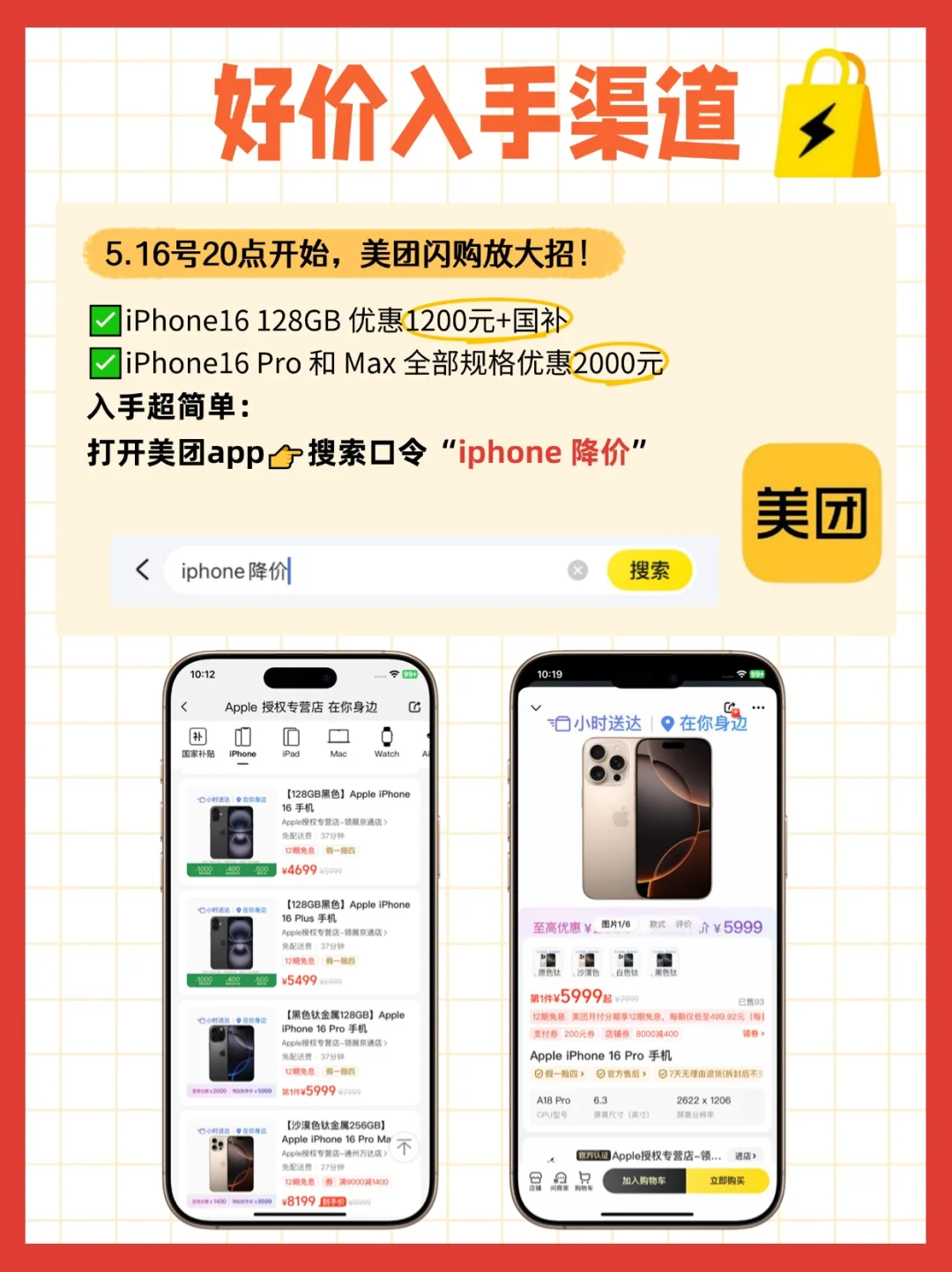 打开美团app👉搜索口令“iphone 降价”即可。
