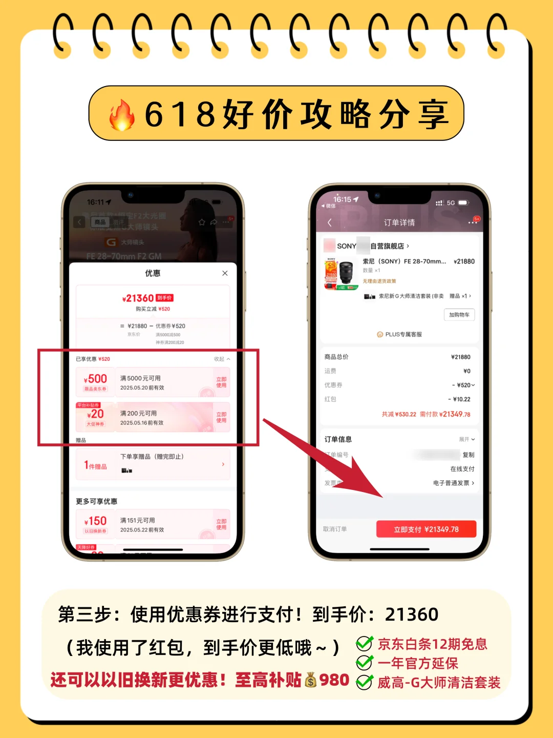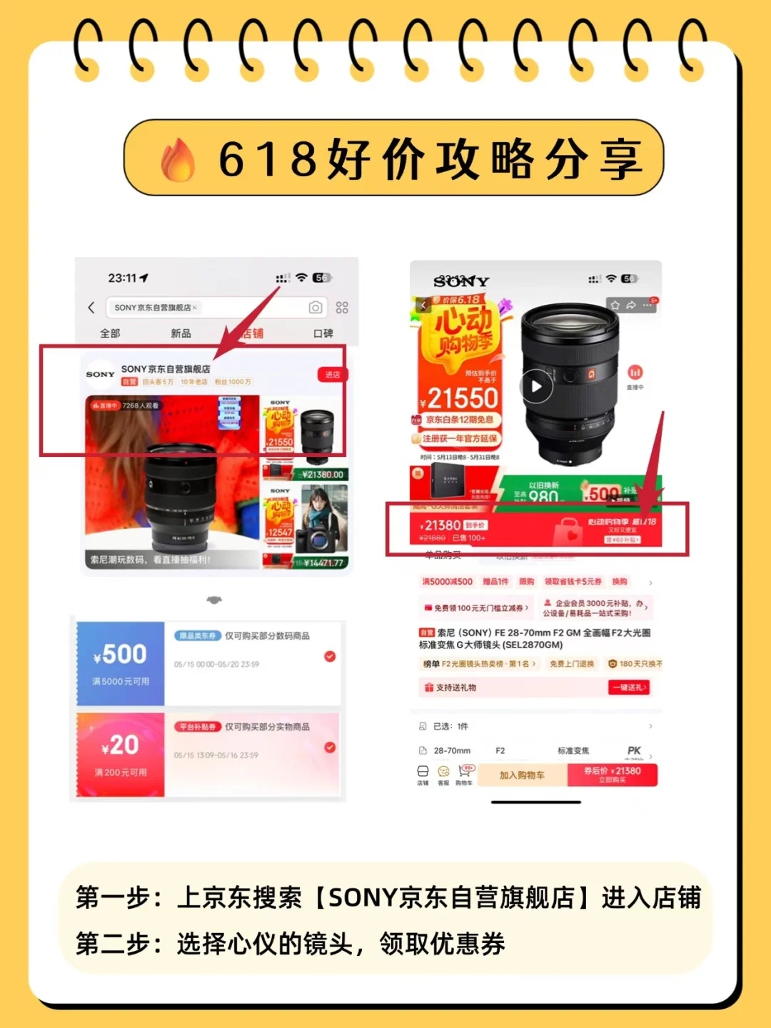重点来啦❗️618优惠直接原地封神!索尼2870GM大师镜头原价21880元,现在叠加品类券和大促神券,到手只要21360元!直降了520元!现在买还有京东白条12期免息、一年官方延保、威高-G大师清洁套装!70200GM2同样也是最低1.7w出头的价格。这优惠现在不冲真的会后悔!🤝🤝