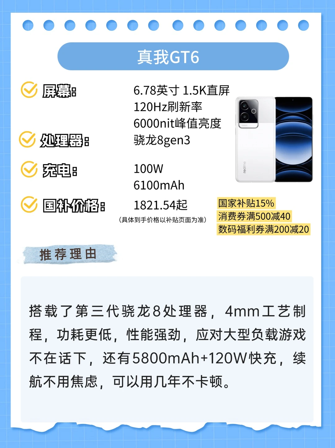 最近有粉丝问我,2000元左右有哪些高性价比手机推荐,刚好趁着淘宝新势力周国补优惠,给大家推荐两款高性价比的手机——真我GT6和一加Ace3Pro