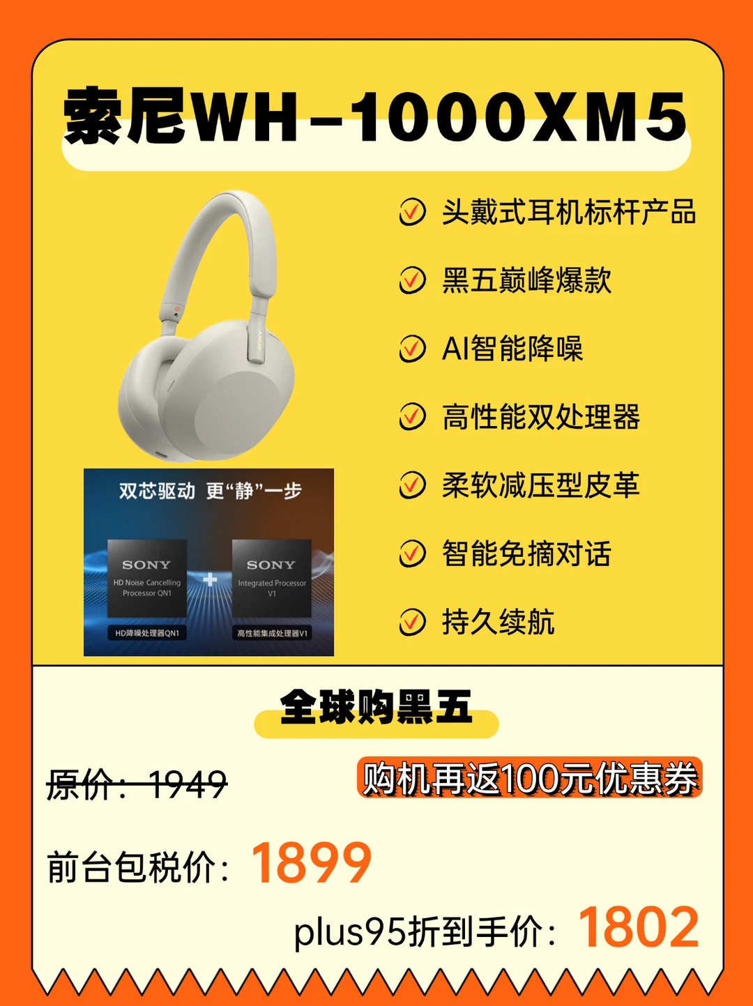 头戴式耳机标杆产品、黑五巅峰爆款、AI智能降噪、高性能双处理器